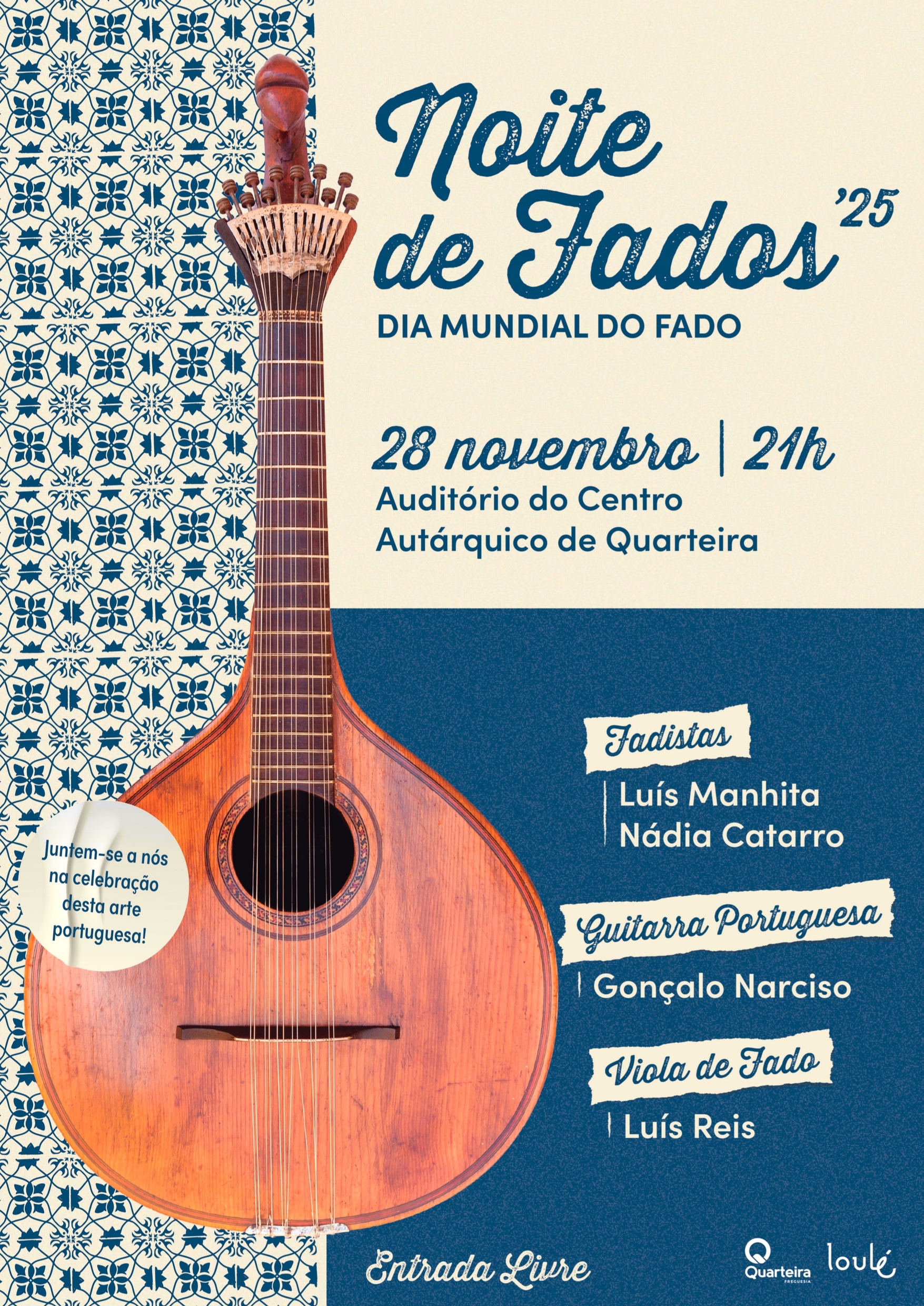 O Auditório do Centro Autárquico de Quarteira recebe, no próximo dia 28 de novembro, às 21:00, a 2.ª edição da Noite de Fados, iniciativa promovida pela Junta de Freguesia para assinalar o Dia Mundial do Fado.