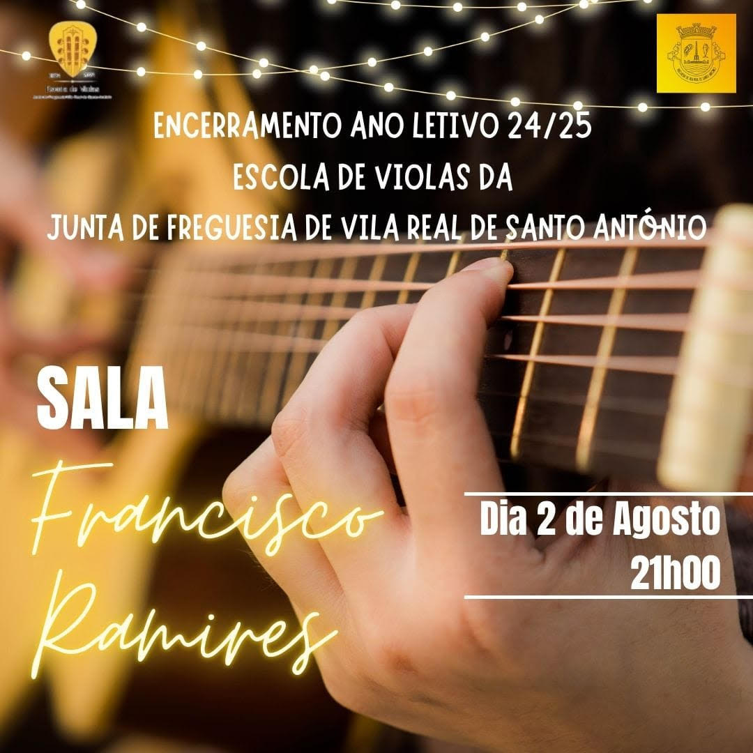 A Escola de Violas da Junta de Freguesia de Vila Real de Santo António vai subir ao palco no próximo sábado, 2 de agosto, às 21:00, para o espetáculo de encerramento do ano letivo, a ter lugar na Sala Francisco Ramires, espaço multiusos da Junta de Freguesia.
