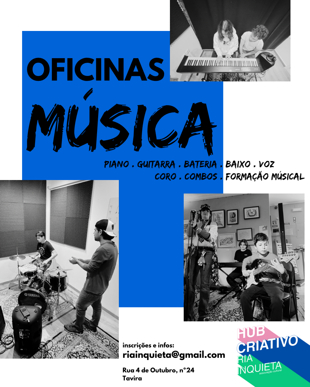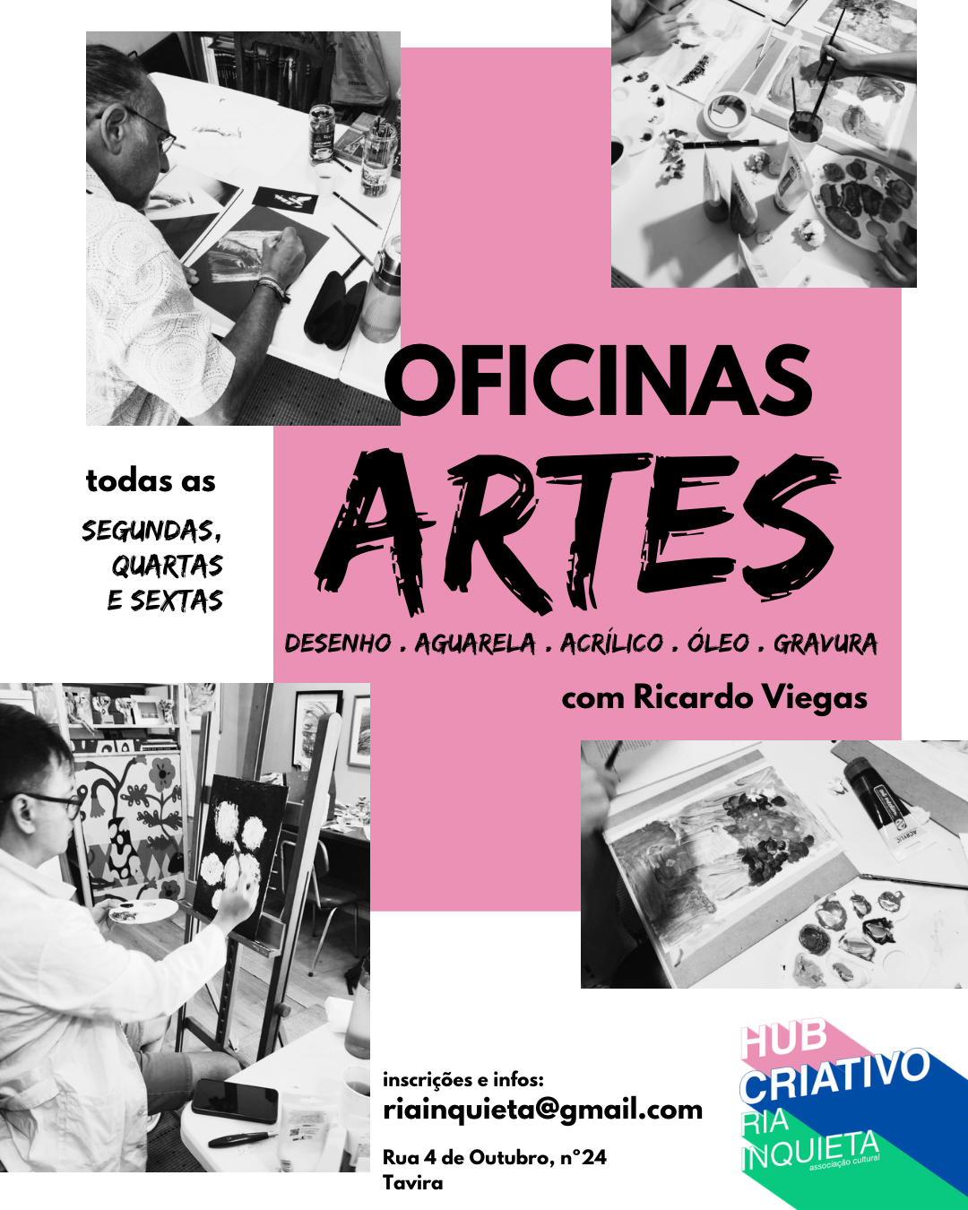 De acordo com a Ria Inquieta, estas atividades procuram incentivar o contacto com diferentes técnicas e processos, proporcionando experiências práticas no universo artístico.