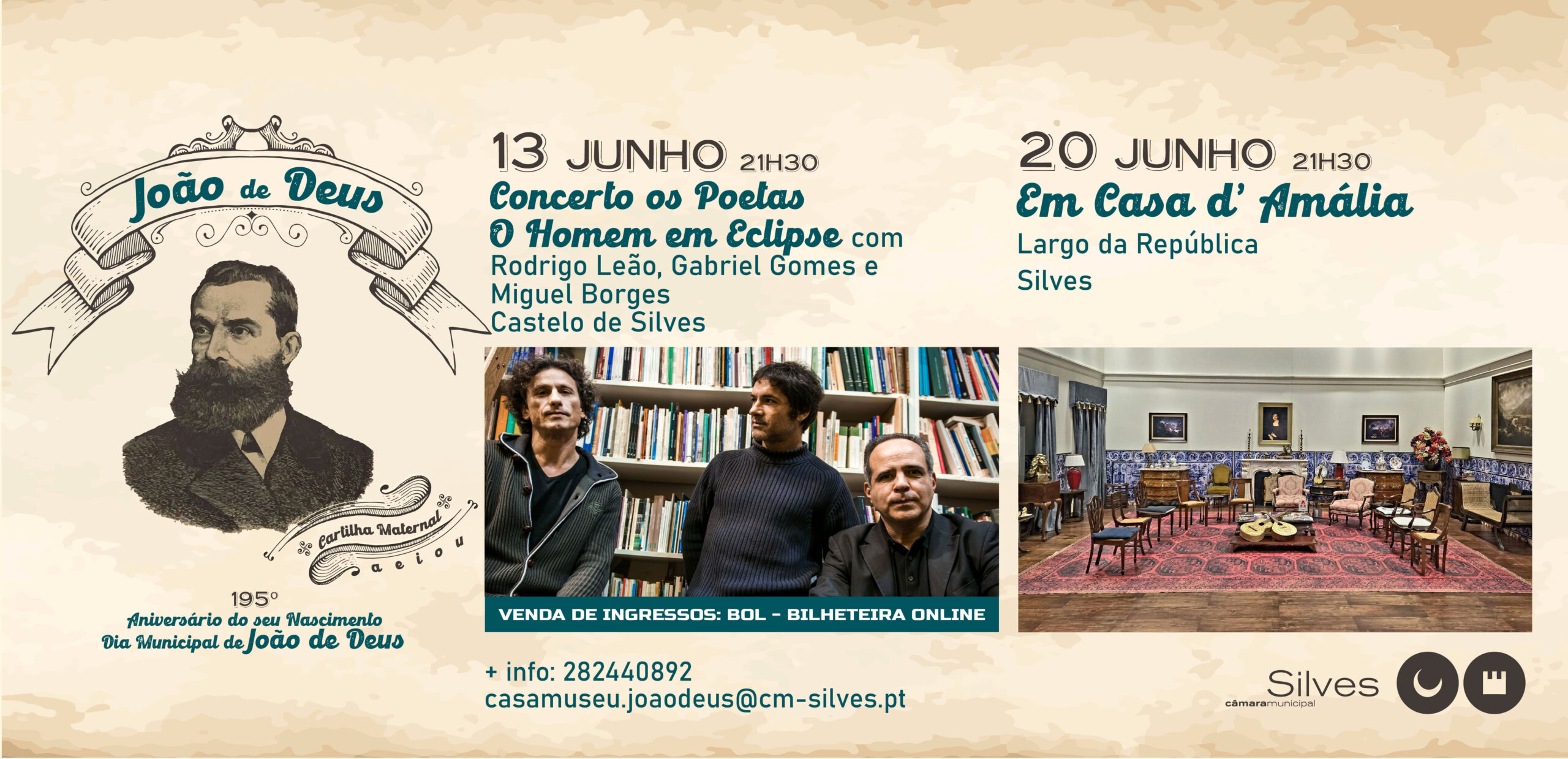 O Município de Silves encerra, nos dias 13 e 20 de junho, o programa evocativo iniciado a 8 de março, data de nascimento do poeta e pedagogo João de Deus, com dois momentos de grande significado cultural que celebram a palavra, a música e o legado de nomes marcantes da história literária e artística portuguesa.