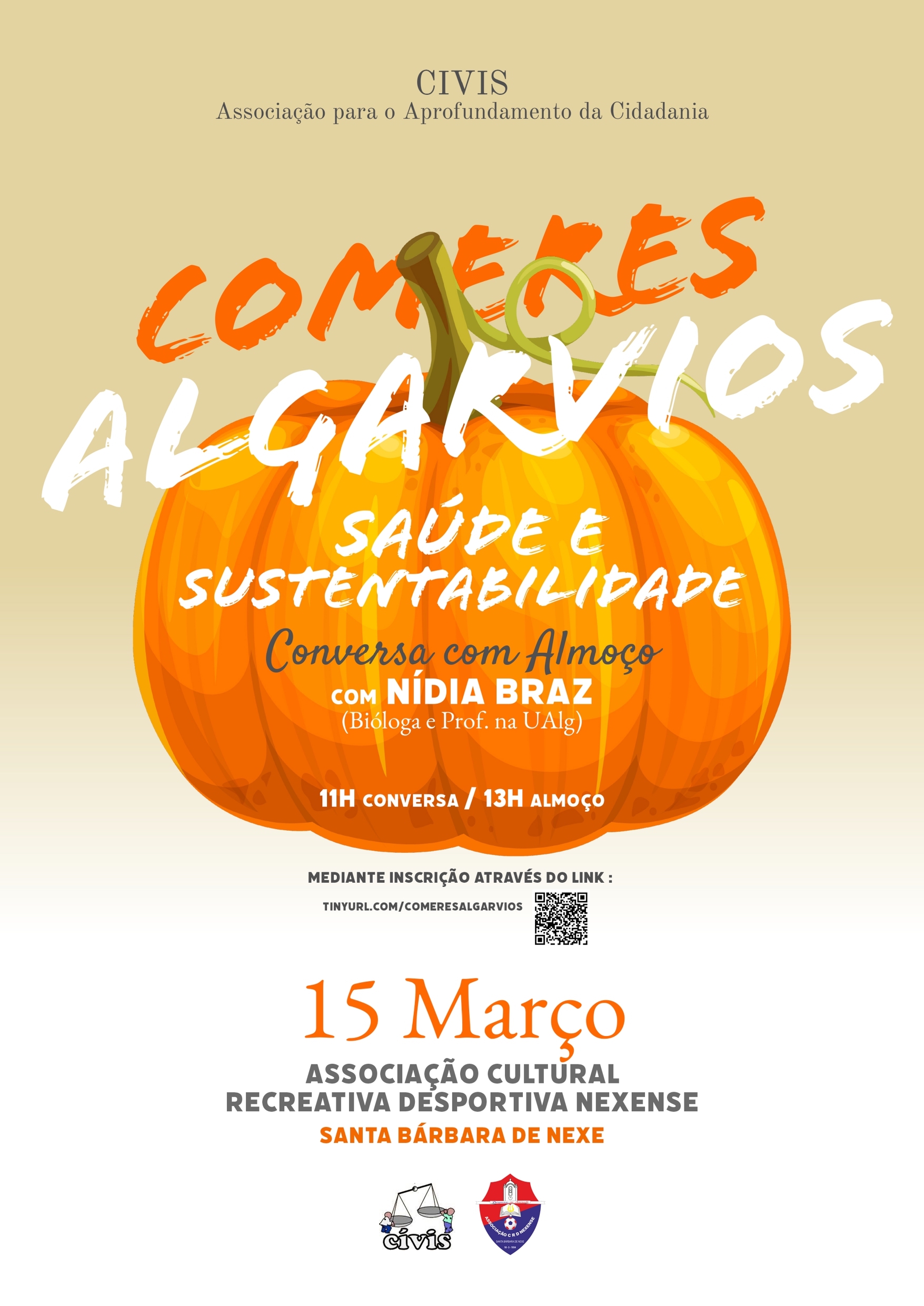 Segundo a organização, “a CÍVIS – associação para o aprofundamento da cidadania, promove, em parceria com a Associação Cultural, Recreativa e Desportiva Nexense (Associação Nexense), uma conversa seguida de almoço, sobre os comeres algarvios e o seu contributo para a saúde e sustentabilidade.”
