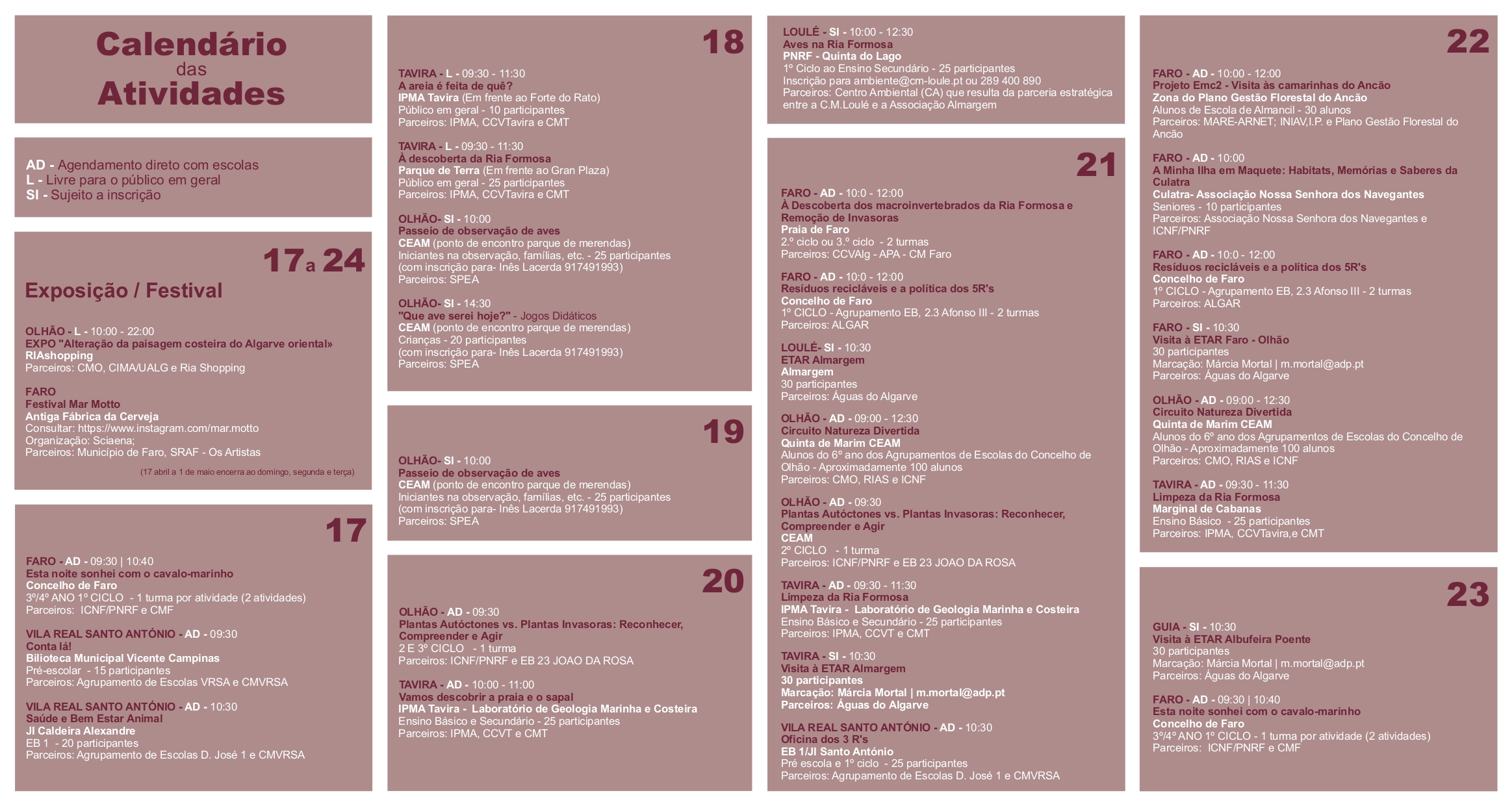 No concelho de Tavira, o programa inclui diversas ações pedagógicas, como iniciativas de limpeza e visitas temáticas dedicadas à Ria Formosa.