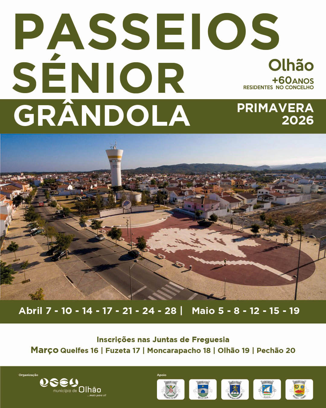 O Município de Olhão vai promover novos Passeios Sénior, tendo como próximo destino a cidade de Grândola, no distrito de Setúbal.