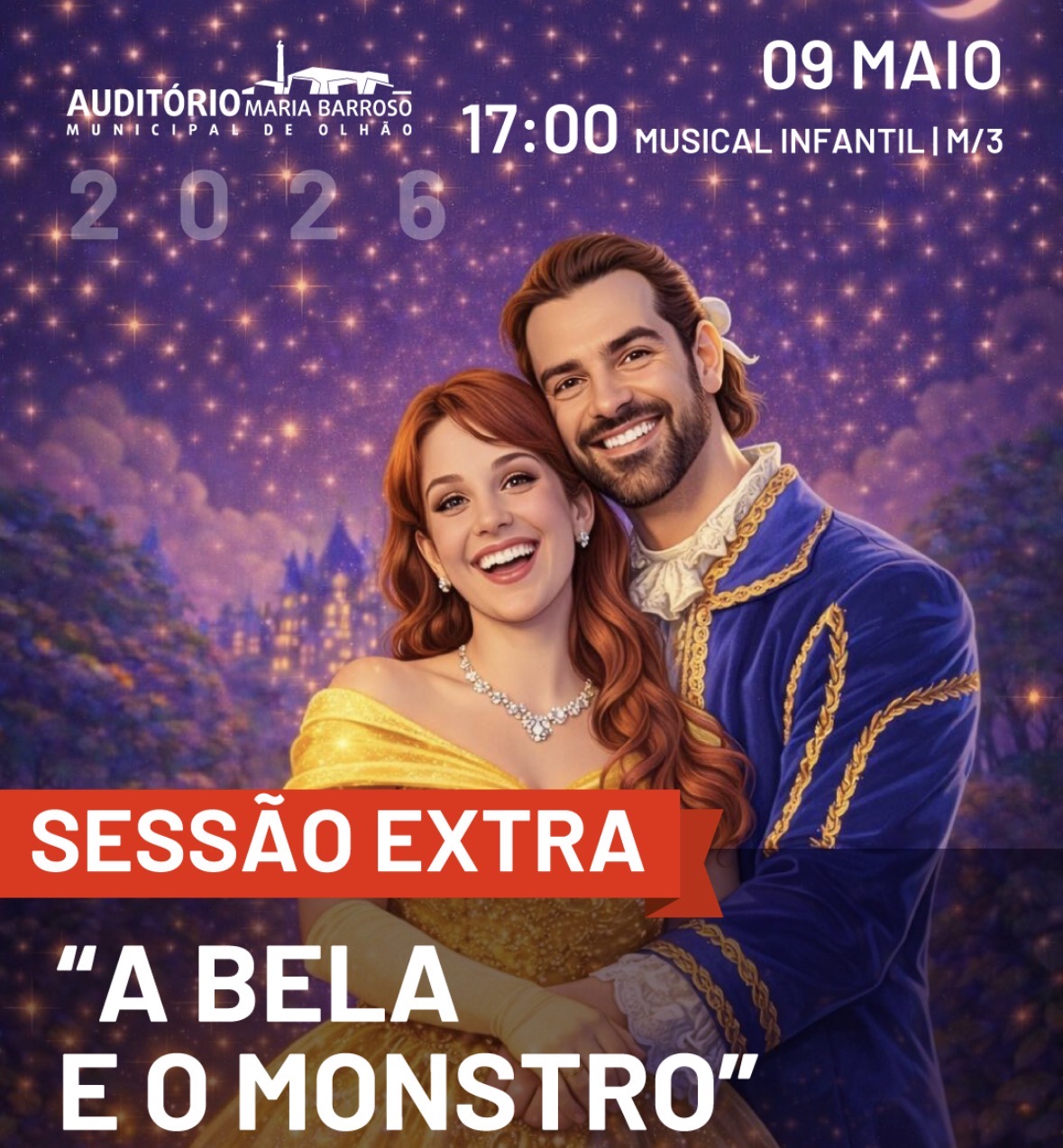 O Auditório Municipal de Olhão recebe, no próximo dia 9 de maio, às 17:00, uma sessão extra do musical infantil “A Bela e o Monstro”, após a forte procura registada para este espetáculo que será apresentado às 15:00.