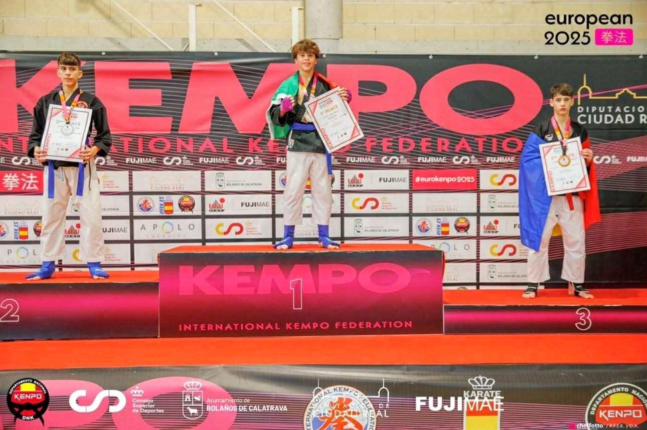 Com apenas 14 anos, o jovem atleta representou Portugal com distinção, alcançando o topo do pódio europeu e afirmando-se como um dos maiores talentos do Kempo nacional.