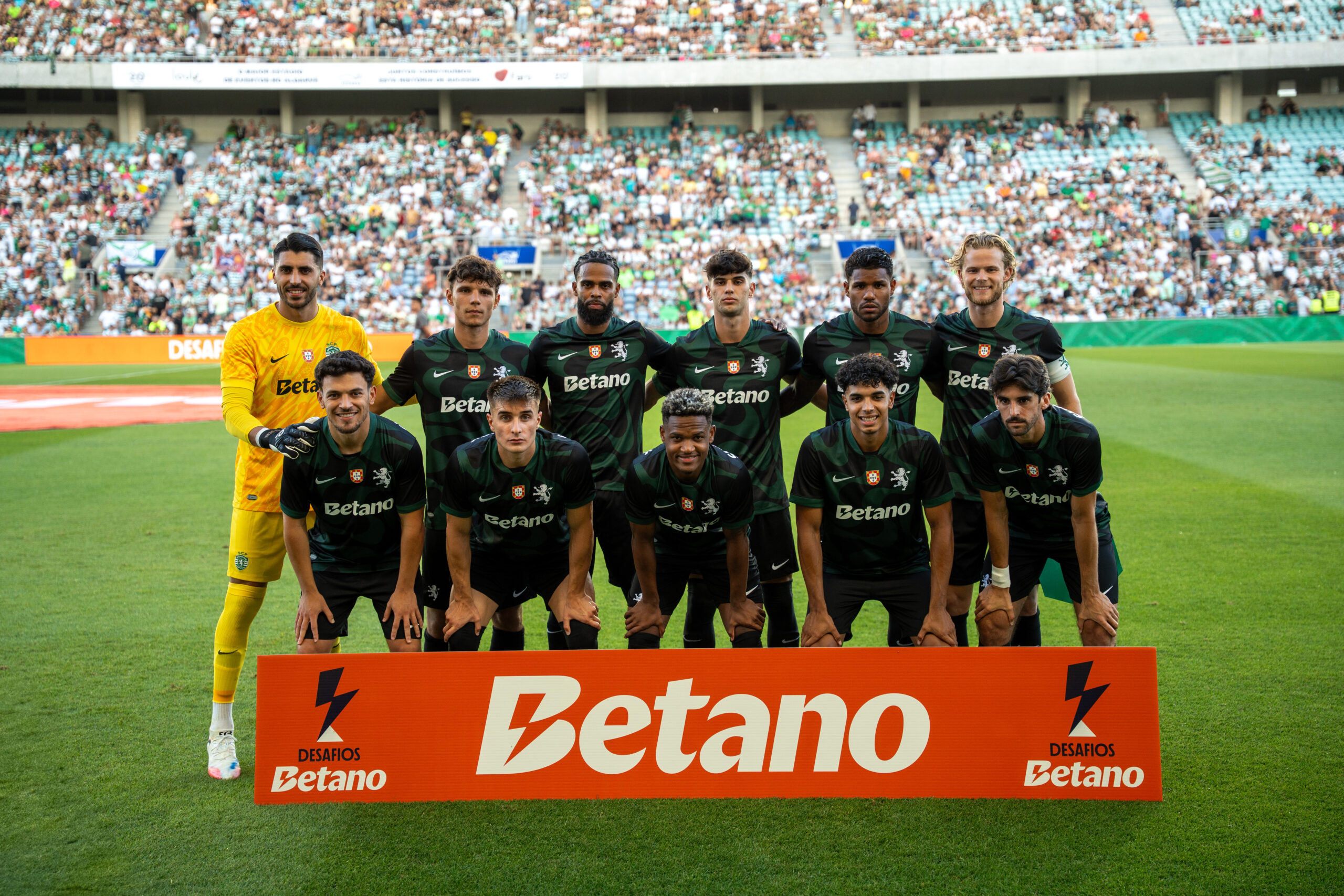 O técnico Rui Borges colocou Hjulmand e João Simões à frente de uma defesa a quatro, em que Matheus Reis jogava à esquerda, com Trincão, Pote e Geny Catamo no tridente de apoio ao jovem avançado Rodrigo Ribeiro, regressado de empréstimo ao AVS e a ocupar a posição ’9’ de Gyokeres, que continua ausente dos trabalhos.