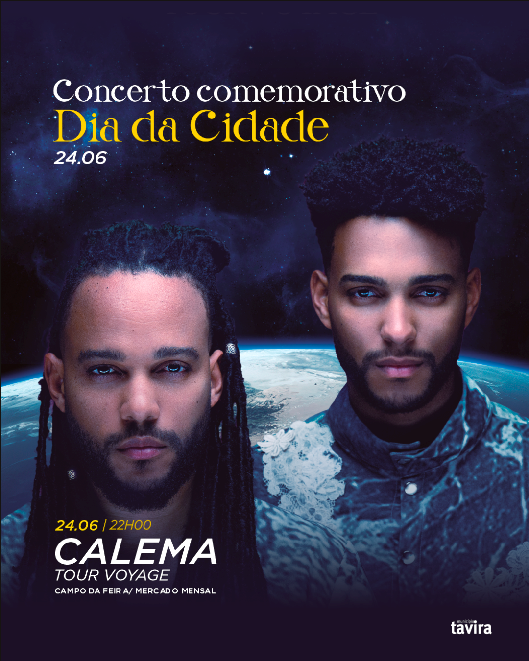 O Município de Tavira celebra o Dia da Cidade no próximo dia 24 de junho com um vasto programa cultural, musical e institucional, que inclui a atribuição de medalhas de bons serviços e dedicação aos funcionários com 20 e 30 anos de serviço, bem como distinções de mérito municipal a cidadãos e entidades locais. O momento alto das comemorações será o concerto dos Calema – Tour Voyage, pelas 22:00.