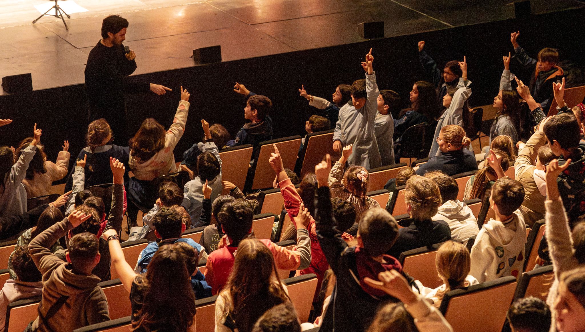 Durante o espetáculo, os alunos tiveram a oportunidade de contactar com diferentes instrumentos musicais, compreender a diversidade de emoções transmitidas pela música e participar ativamente em momentos de interação. Entre as experiências proporcionadas, destacou-se a possibilidade de assumirem, de forma simbólica, o papel de maestro, numa dinâmica pedagógica pensada para estimular o envolvimento do público jovem.