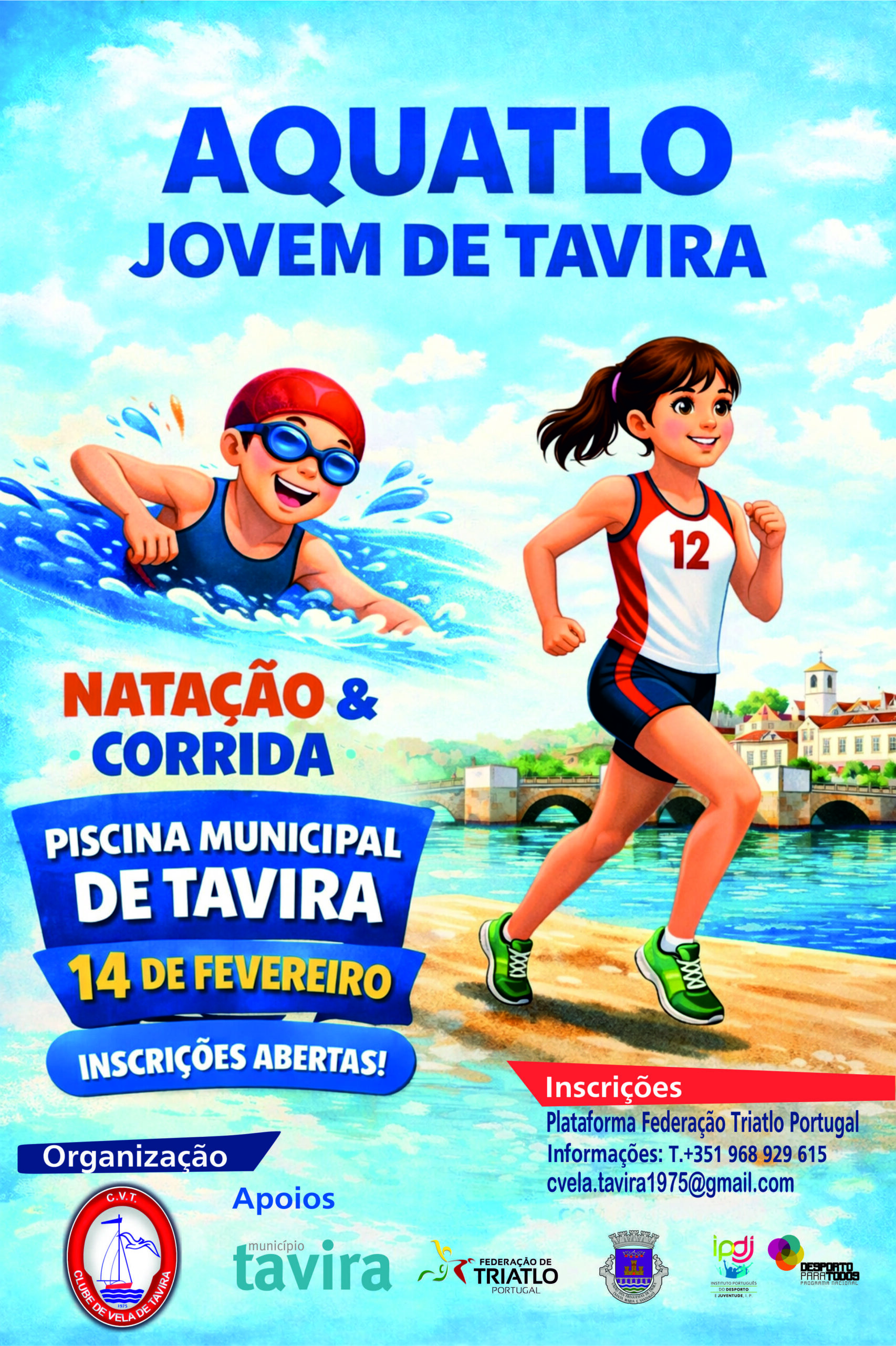 Realiza-se no próximo sábado, 14 de fevereiro, o 1.º Aquatlo Jovem de Tavira, iniciativa organizada pelo Clube de Vela de Tavira, com o apoio do Município de Tavira, do Instituto Português do Desporto e da Juventude, da União das Freguesias de Tavira e o apoio técnico da Federação de Triatlo de Portugal.