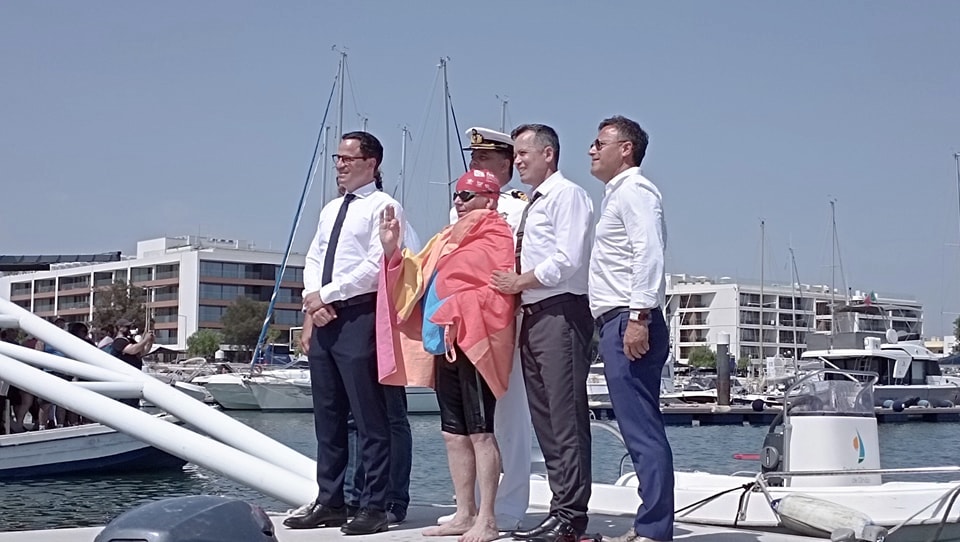 Acompanhado de perto por familiares, amigos, o seu treinador e várias figuras públicas, Mário foi também saudado na chegada por representantes políticos e pela autoridade marítima, que testemunharam mais um marco na sua longa ligação ao mar de Olhão.