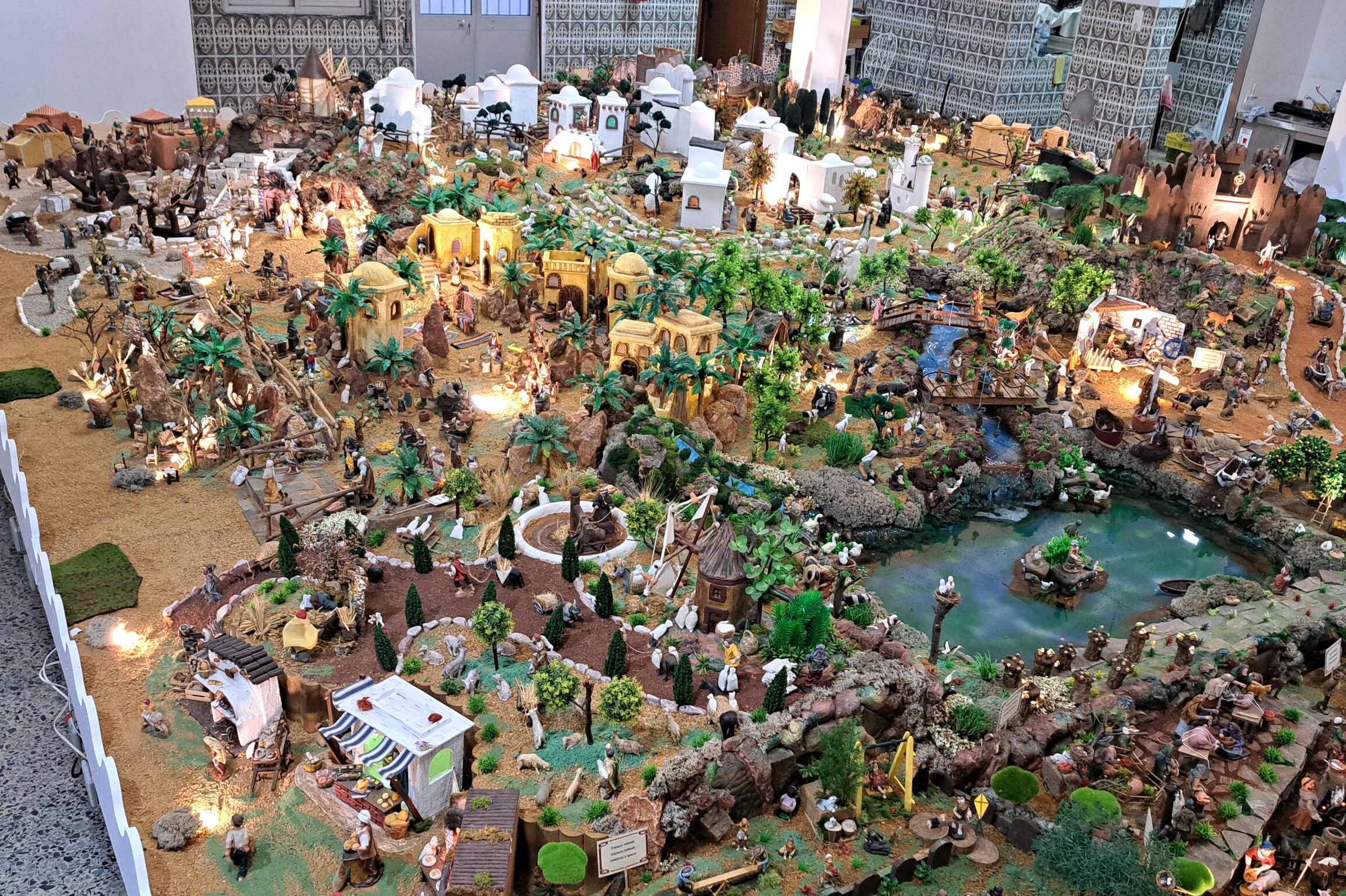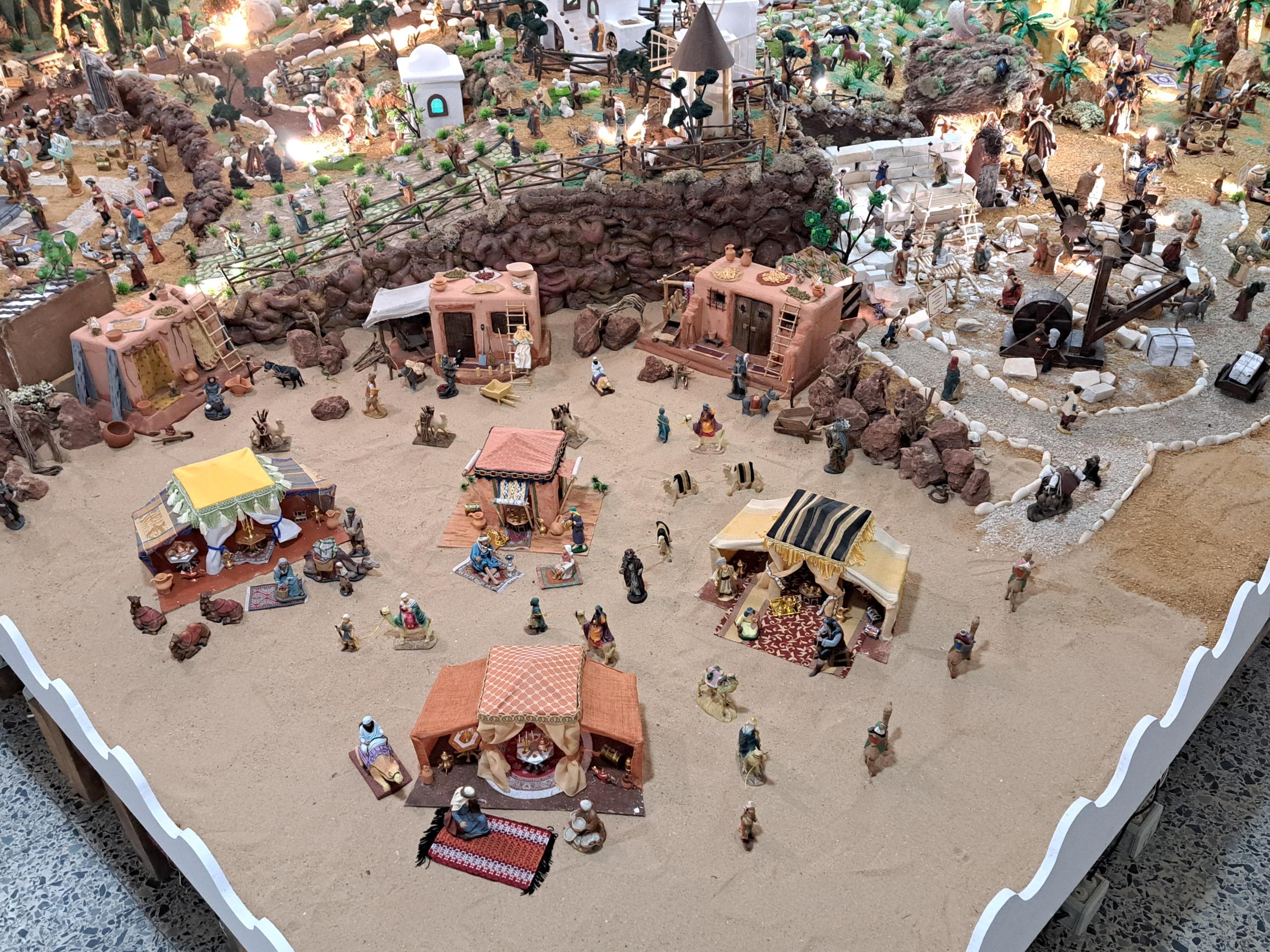 Com uma área aproximada de 70 metros quadrados, o presépio integra cerca de três mil figuras assentes em seis toneladas de areia, num trabalho minucioso desenvolvido ao longo dos meses de outubro e novembro. A estrutura conta ainda com cerca de 150 pontos de luz, que reforçam o ambiente cenográfico e a perceção de detalhe das peças.