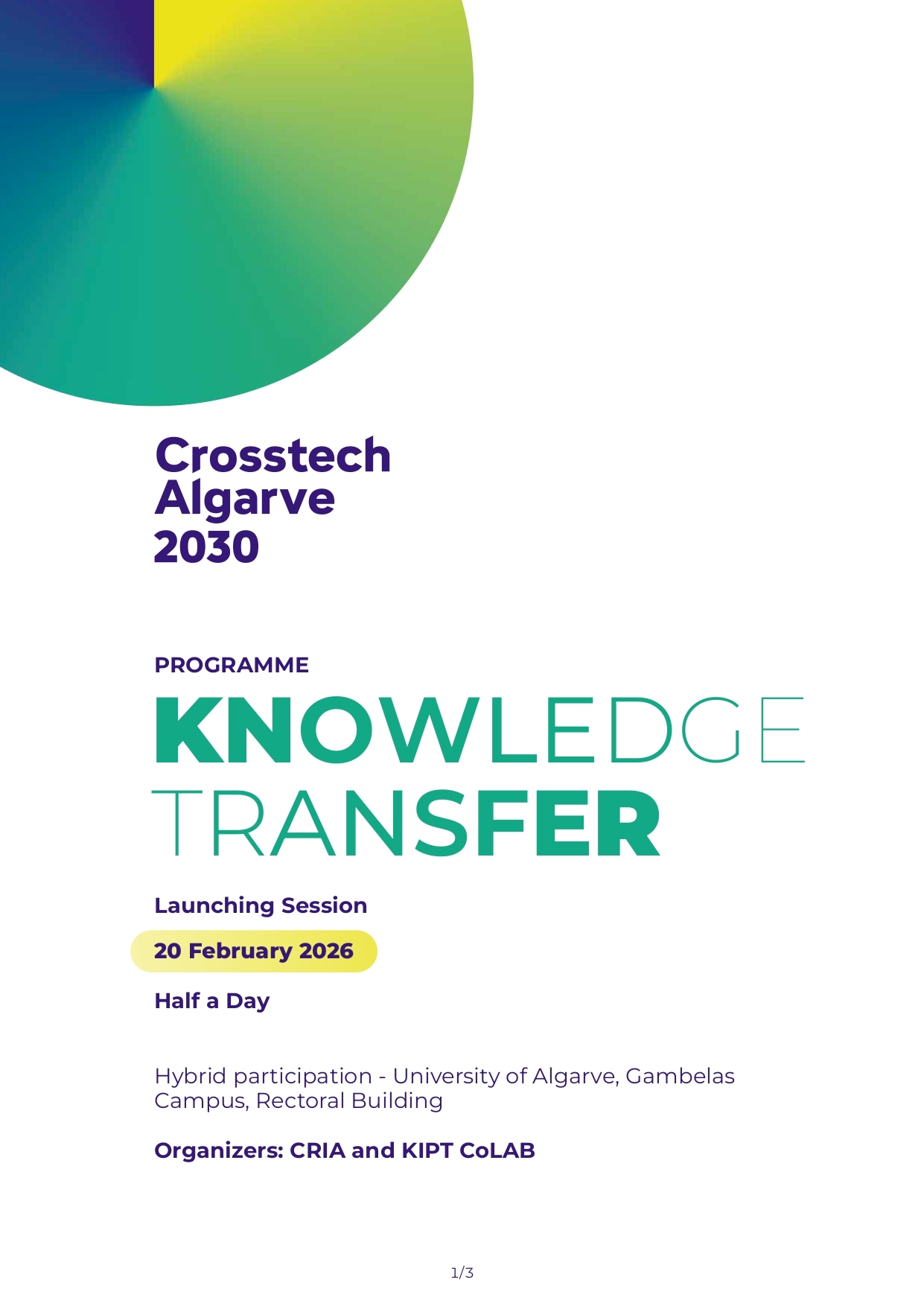 O KIPT CoLAB e a Universidade do Algarve (UAlg) promovem, no próximo dia 20 de fevereiro, no Campus de Gambelas, uma sessão de trabalho integrada no programa CrossTech Algarve 2030, iniciativa centrada na transferência de conhecimento e na definição de uma visão estratégica para o futuro da hotelaria na região.