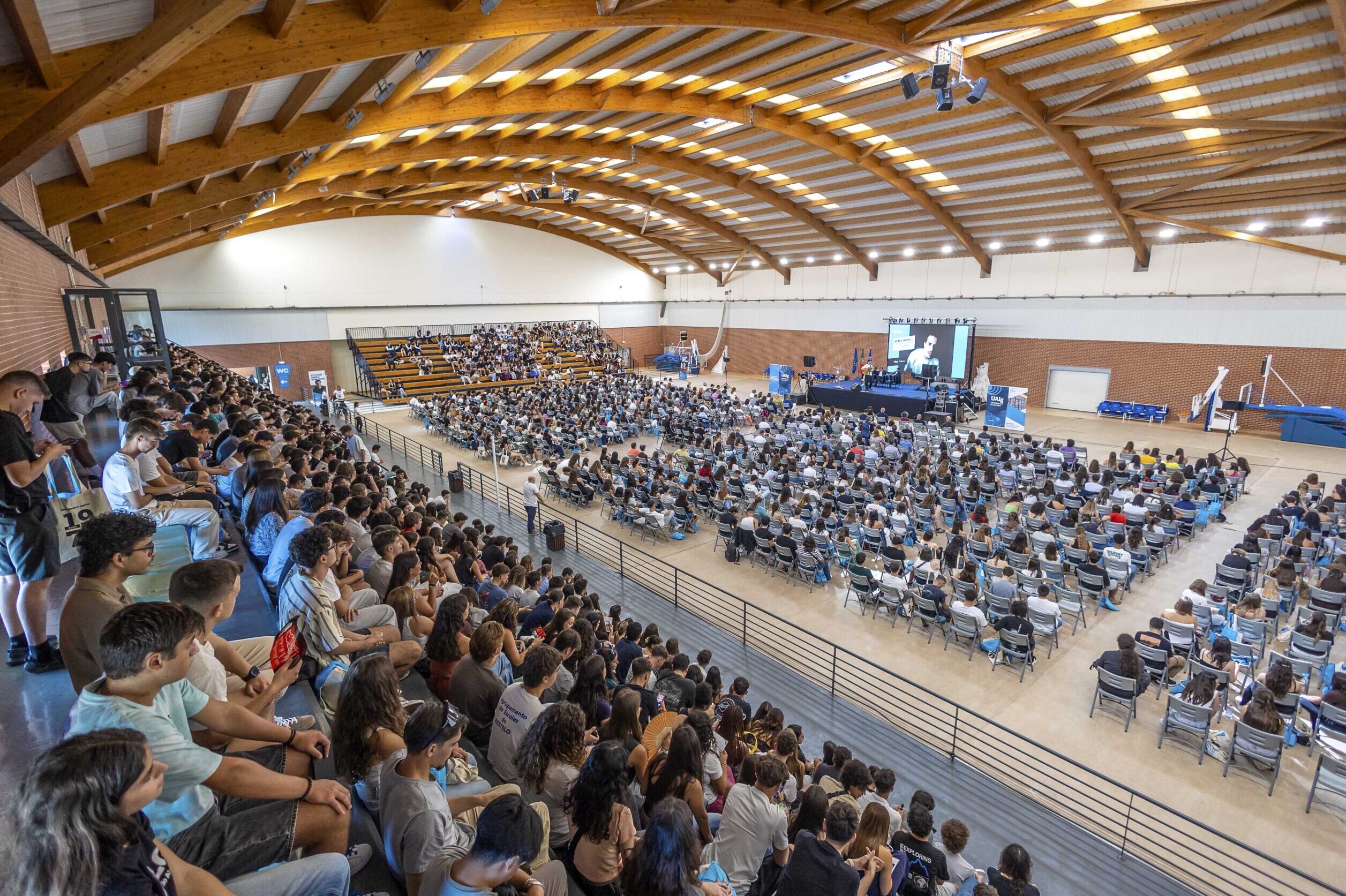 A Universidade do Algarve (UAlg) deu as boas-vindas aos novos estudantes com um programa de receção que decorreu esta segunda-feira, 8 de setembro, no Pavilhão Municipal da Penha, em Faro. A sessão oficial de abertura terminou em ambiente festivo, com um Sunset animado pelo quiz “Dr. Why Portugal”, um podcast ao vivo de Rafael Vieira e a atuação das “Más Influências – Bruna Magalhães e Mia Fernandes”.