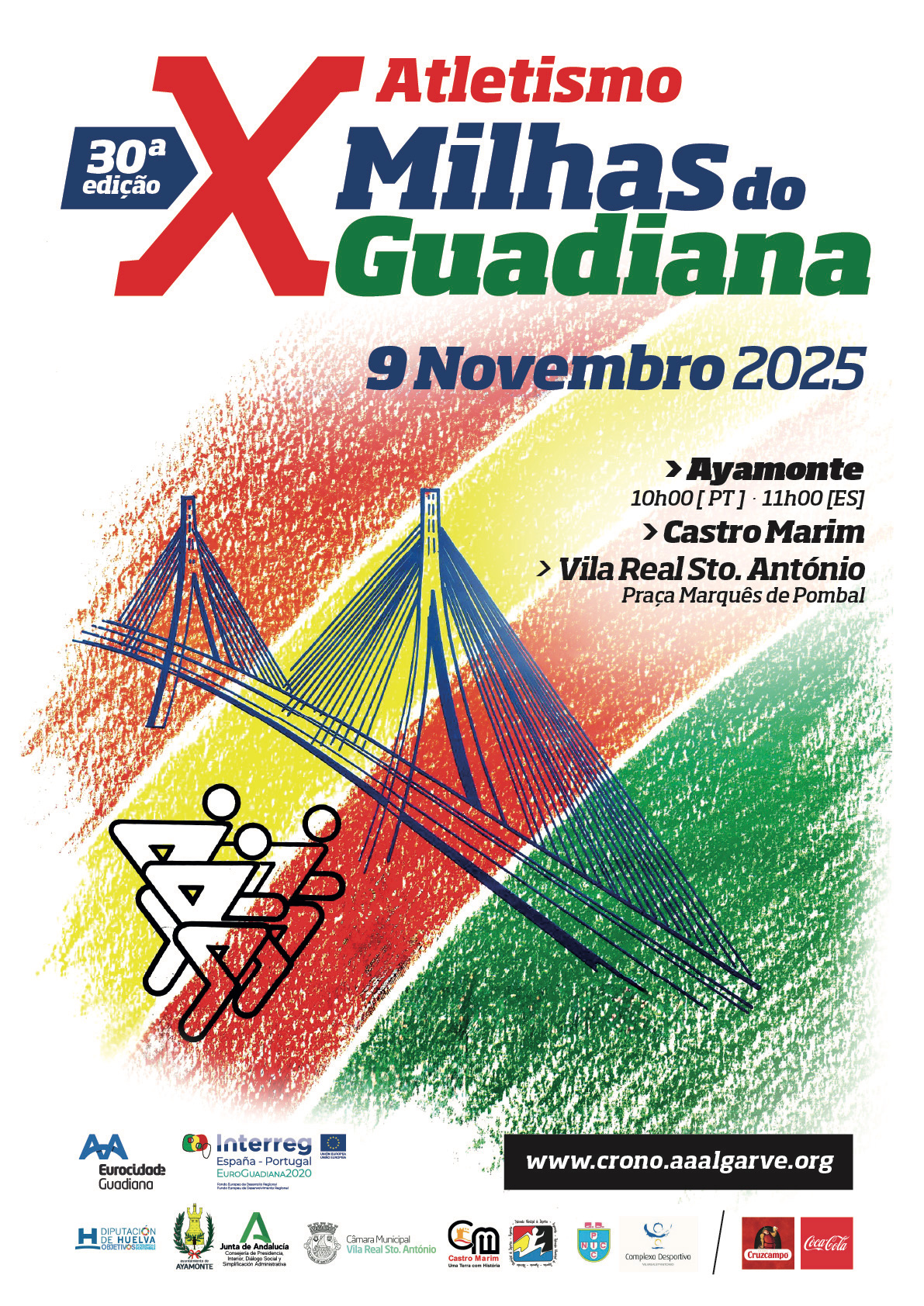 A corrida internacional “X Milhas do Guadiana” regressa no dia 9 de novembro para celebrar a sua 30.ª edição, reafirmando o espírito de união desportiva entre as cidades de Vila Real de Santo António (Portugal) e Ayamonte (Espanha), através de um percurso com mais de 18 quilómetros.