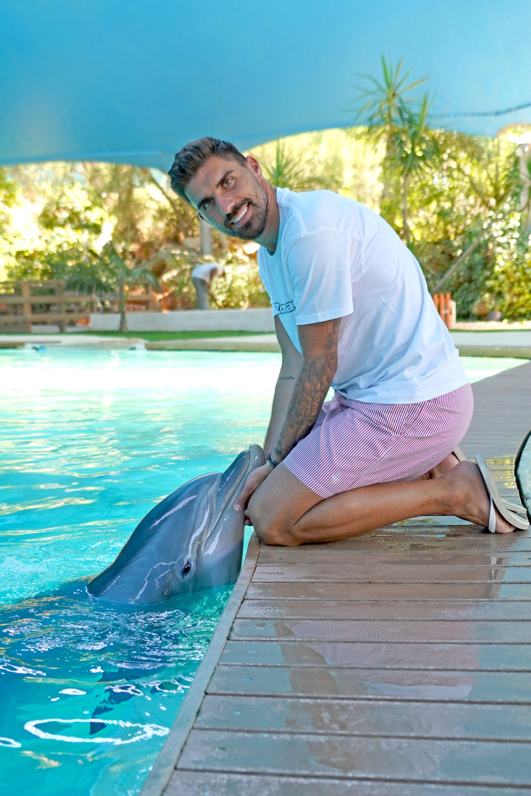 O dia incluiu ainda algumas das experiências mais emblemáticas do parque. A família participou num Meet & Greet com um golfinho, onde, segundo o Zoomarine, “tiveram oportunidade de conhecer de perto as características da espécie e os cuidados essenciais à sua preservação”.