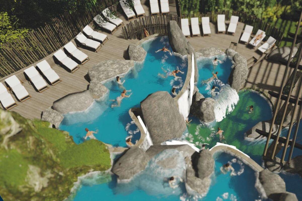 O complexo conta com piscinas termais hidrodinâmicas a céu aberto, oferecendo uma experiência relaxante e terapêutica. Além disso, inclui uma cascata, duches sensoriais, sauna e banho turco, proporcionando um leque diversificado de serviços de bem-estar.