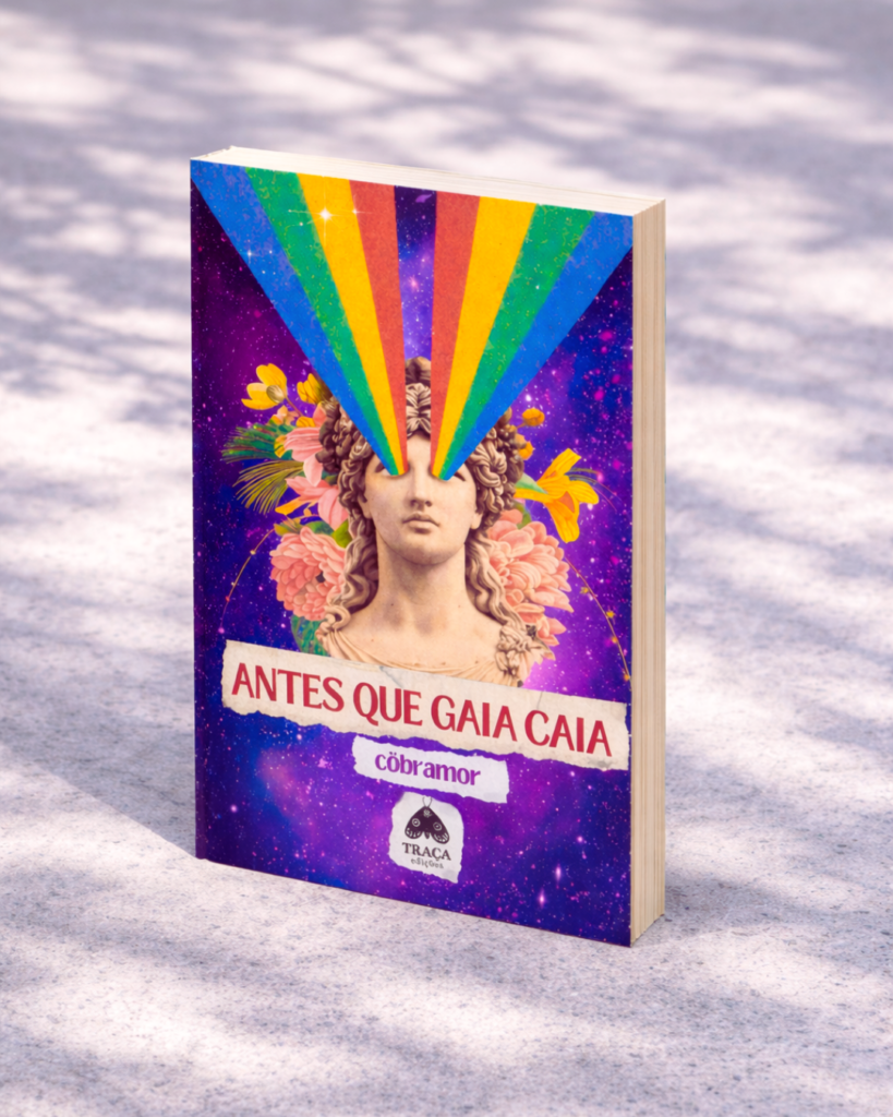 A obra Antes que Gaia Caia, da autoria de Cobramor, apresenta-se como um poema longo que explora a origem, transformação e eventual ruína do mundo, numa edição da Traça Edições.