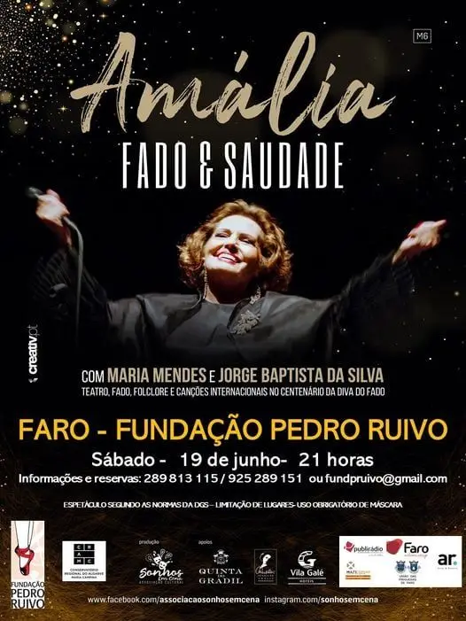 A Fundação Pedro Ruivo, em Faro, recebe já no próximo sábado, pelas 21:00 horas, o espetáculos comemorativo do centenário de nascimento de Amália Rodrigues.