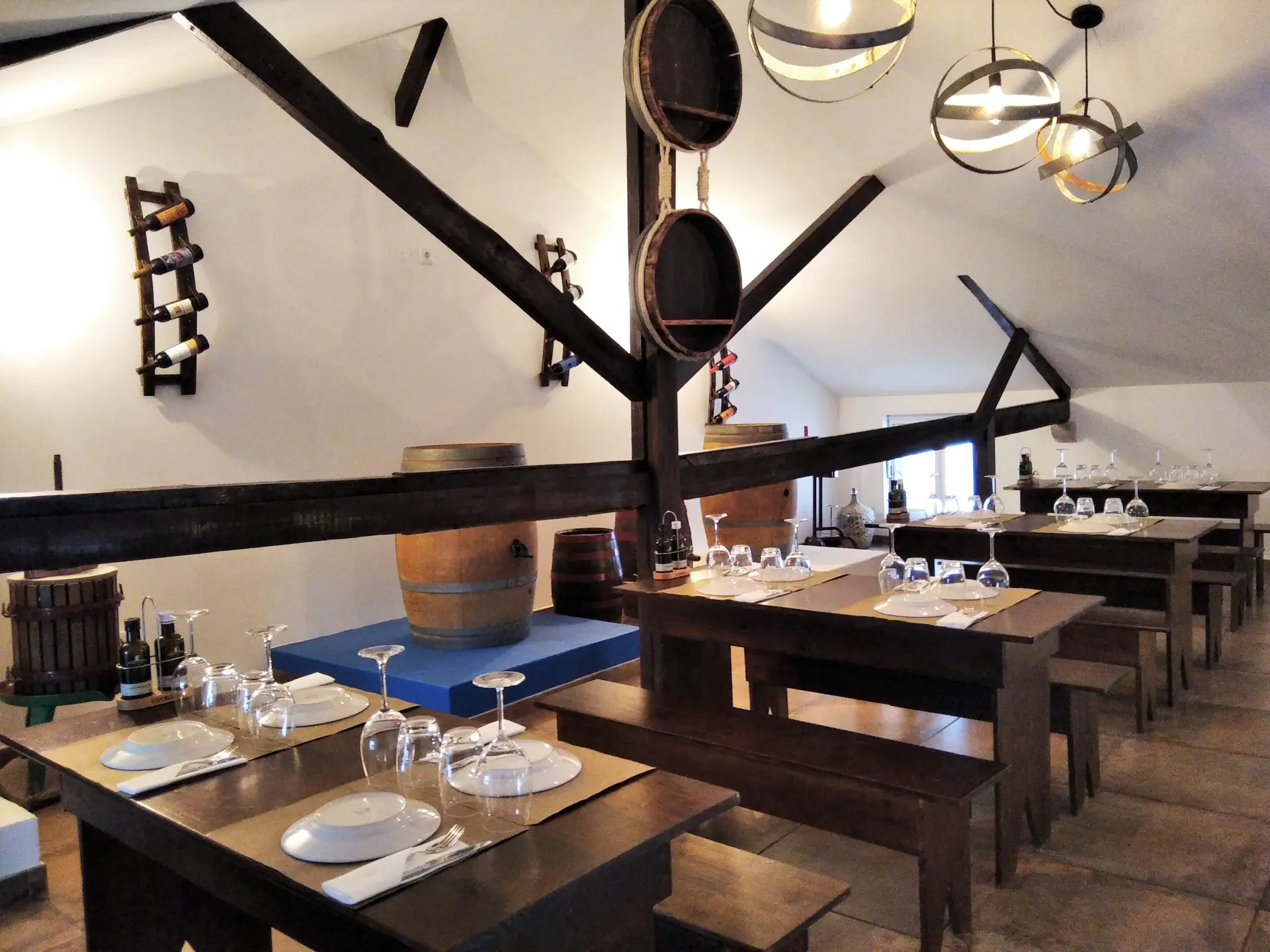 No logo aparece o desenho de uma avozinha, sinónimo de comida tradicional e de tacho, com ênfase nos peixes e mariscos. Reavivam-se “memórias gastronómicas” e propostas que passaram de geração em geração através de mãos sábias. “Queremos que se lembrem dos pratinhos da mãe e da avó”, refere Jorge. Veem-se mãos enrugadas na indumentária, barrotes originais de madeira e gavetas no teto, armações em ferro de barricas transformadas em candeeiros, e pipas no primeiro andar, um patamar inspirado nos vinhos. Detalhes rústicos pontuam, assim, o ambiente contemporâneo da sala, onde funcionava uma antiga depuradora.