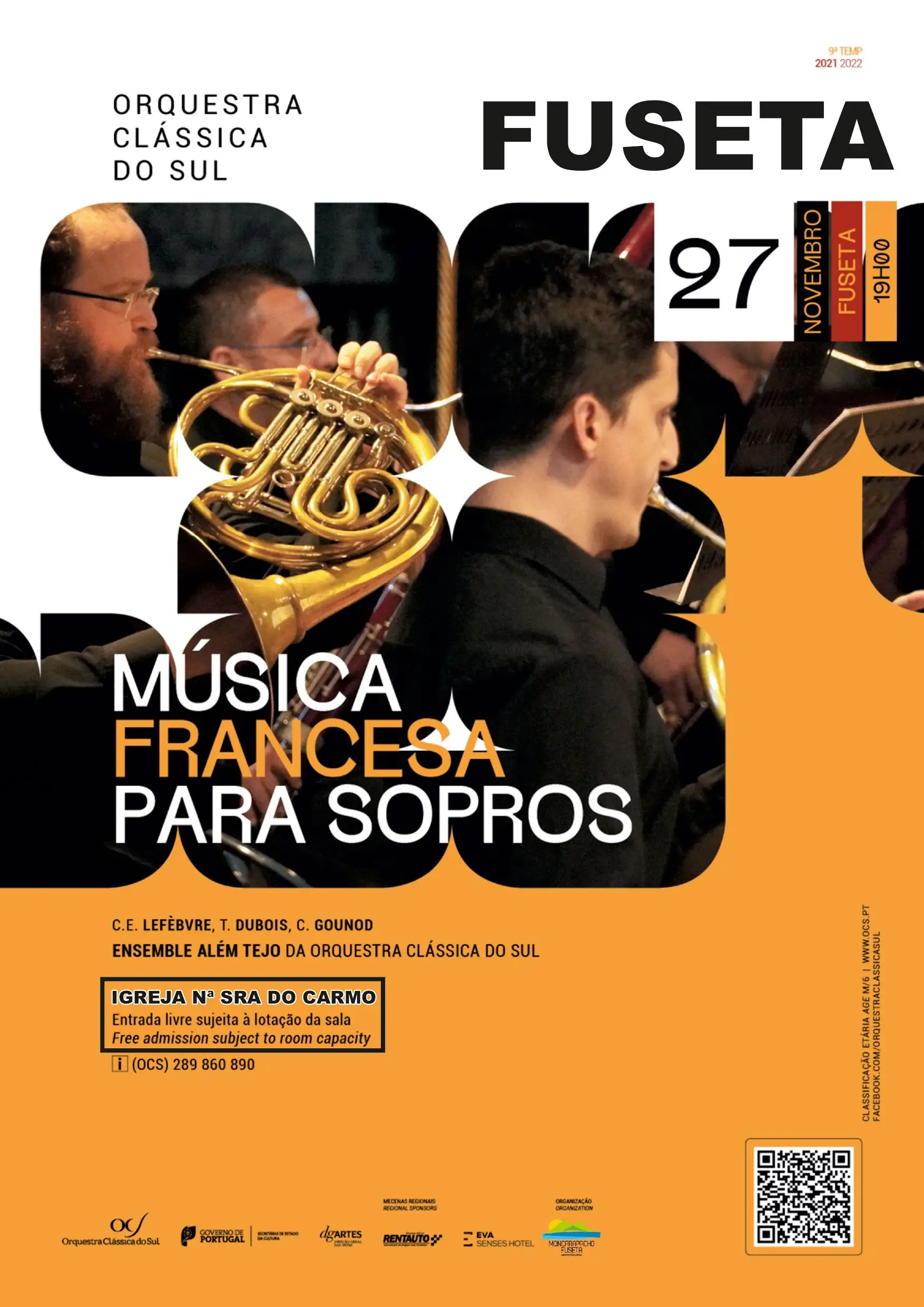 Com entradas livres mas com lotação limitada – cumprindo as normas da DGS – o espetáculo “Ensemble Além Tejo” da Orquestra Clássica do Sul, começa às 19:00, terá a duração de 50 minutos, e incidirá sobre música francesa para sopros, de Charles Edouard Lefèbvre, Théodore Dubois e Charles Gounod.
