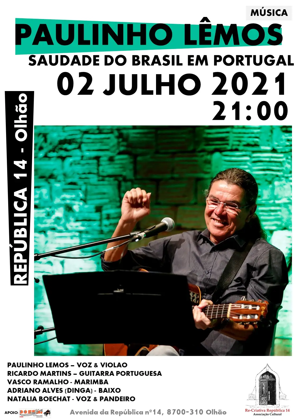 “Saudades do Brasil em Portugal” é como se intitula o concerto que o brasileiro Paulinho Lêmos vai dar esta sexta-feira no espaço ao ar livre da República 14, em Olhão, a partir das 21:00 horas.