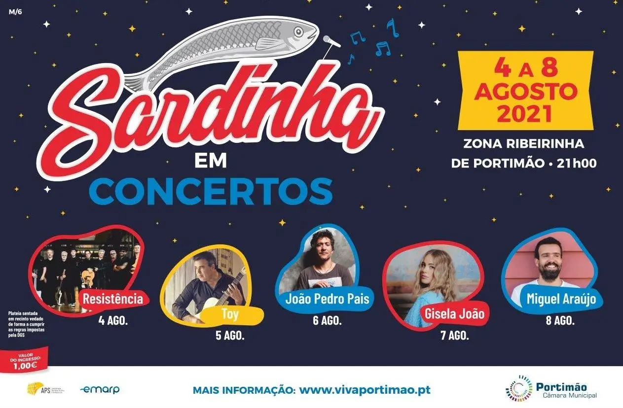Entre 4 e 8 de agosto, a zona ribeirinha de Portimão vai ser palco para os espetáculos musicais inseridos na programação do evento “Sardinha em Concertos”, que decorrerão com toda a segurança sanitária, tendo o rio Arade como pano de fundo.