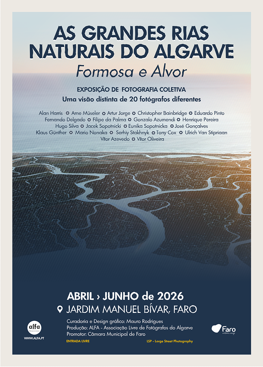 Produzida pela ALFA – Associação Livre de Fotógrafos do Algarve, com curadoria do fotógrafo Mauro Rodrigues e promoção da Câmara Municipal de Faro, a mostra reúne trabalhos de 20 fotógrafos convidados pela associação, propondo ao público uma viagem visual pela Ria Formosa e pela Ria de Alvor, zonas húmidas reconhecidas pela biodiversidade e pelo papel que desempenham no equilíbrio ambiental da região.
