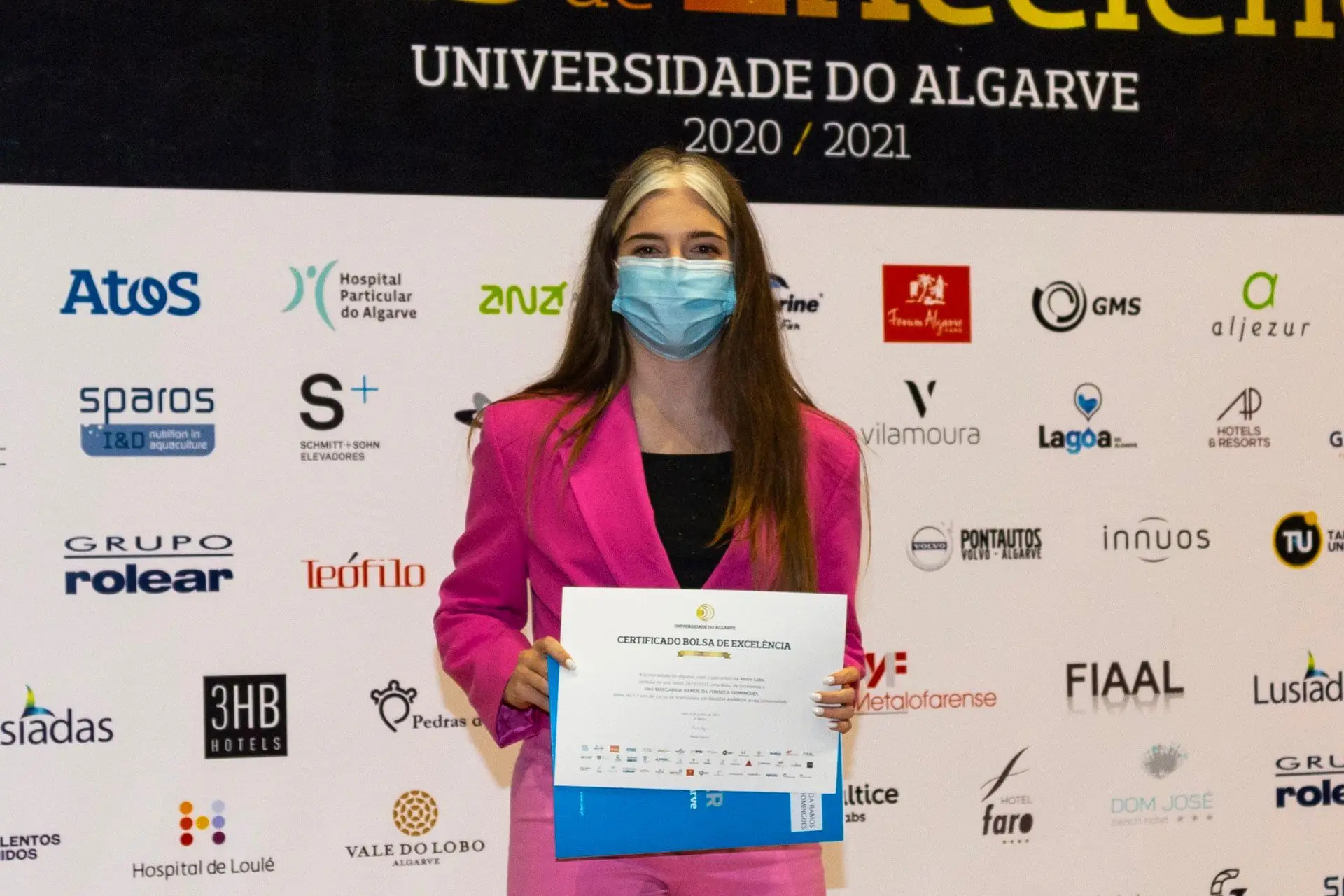 A aluna, que nesta cerimónia discursou em representação dos alunos premiados, agradeceu à Universidade do Algarve e às empresas esta oportunidade. “A atribuição da Bolsa de Excelência foi algo que me motivou durante o ensino secundário, e acredito que também o seja para qualquer estudante que pretenda ingressar na UAlg”.