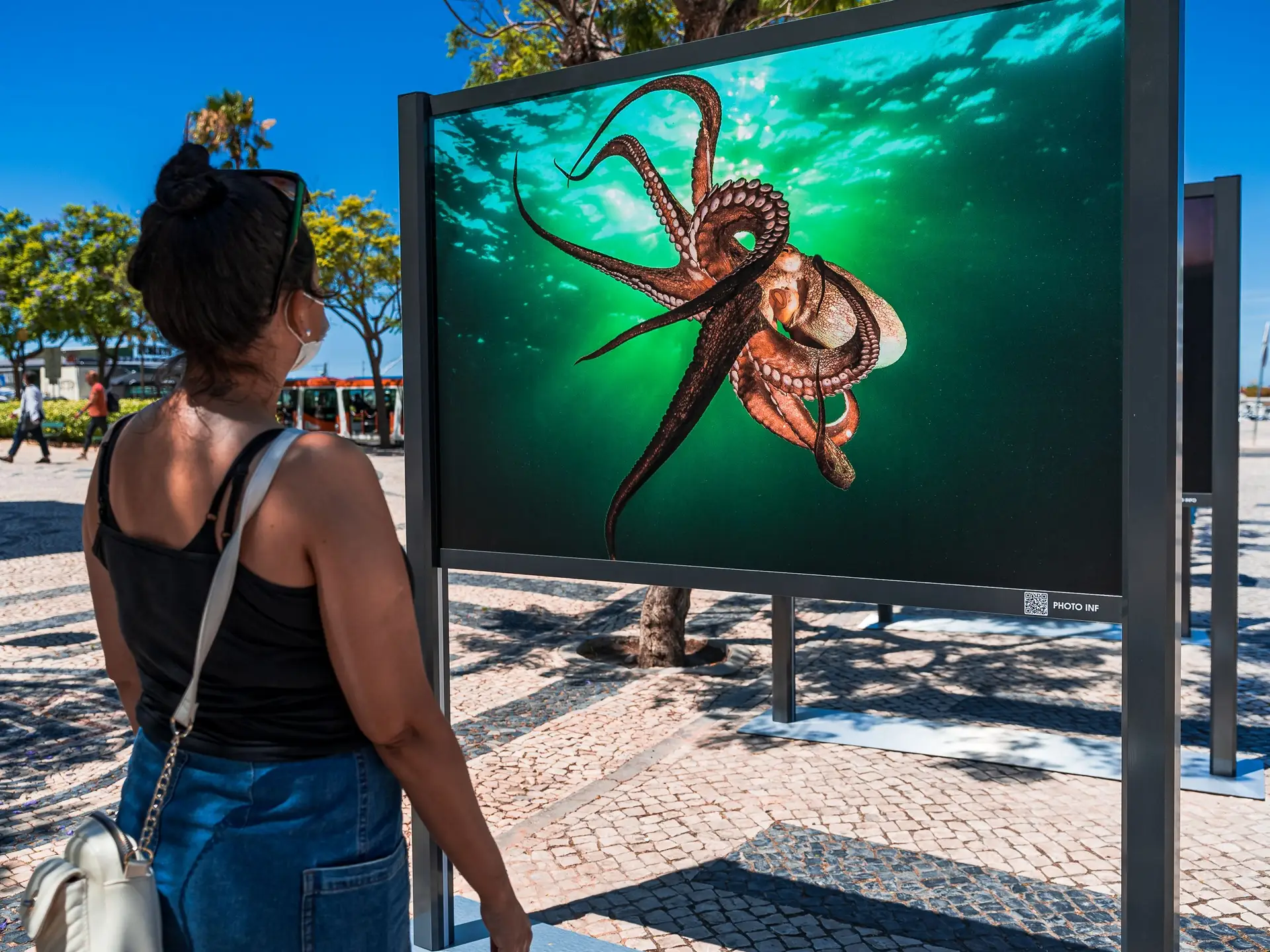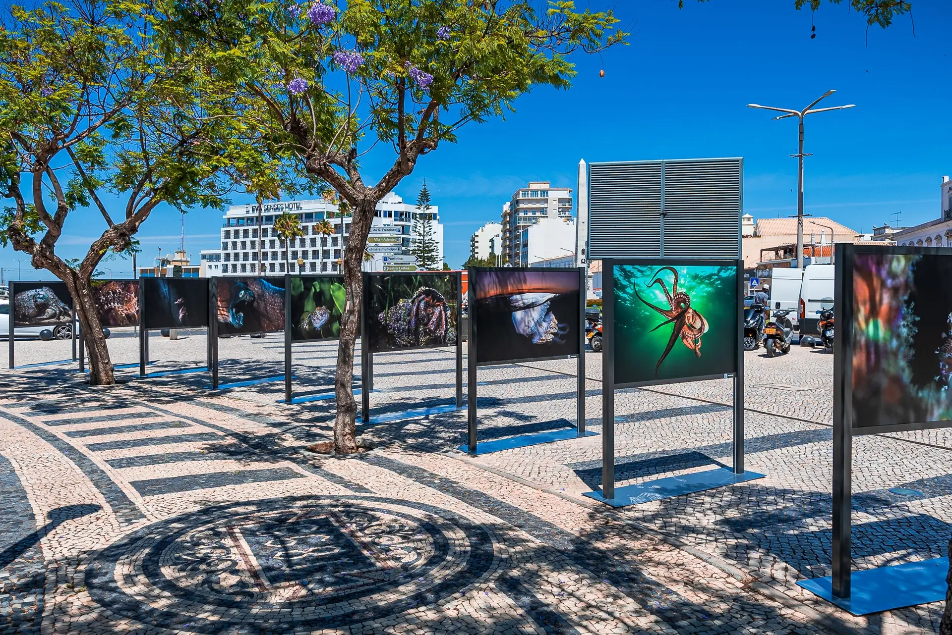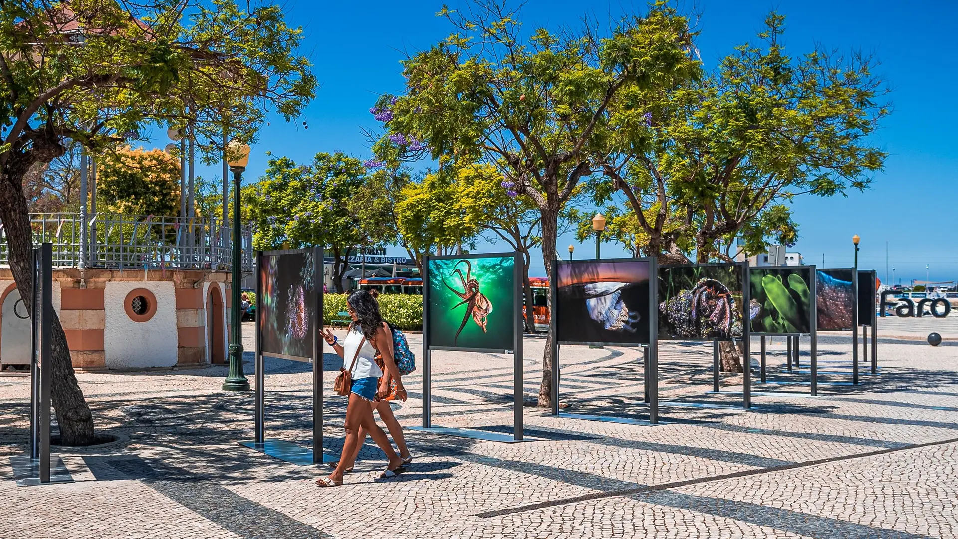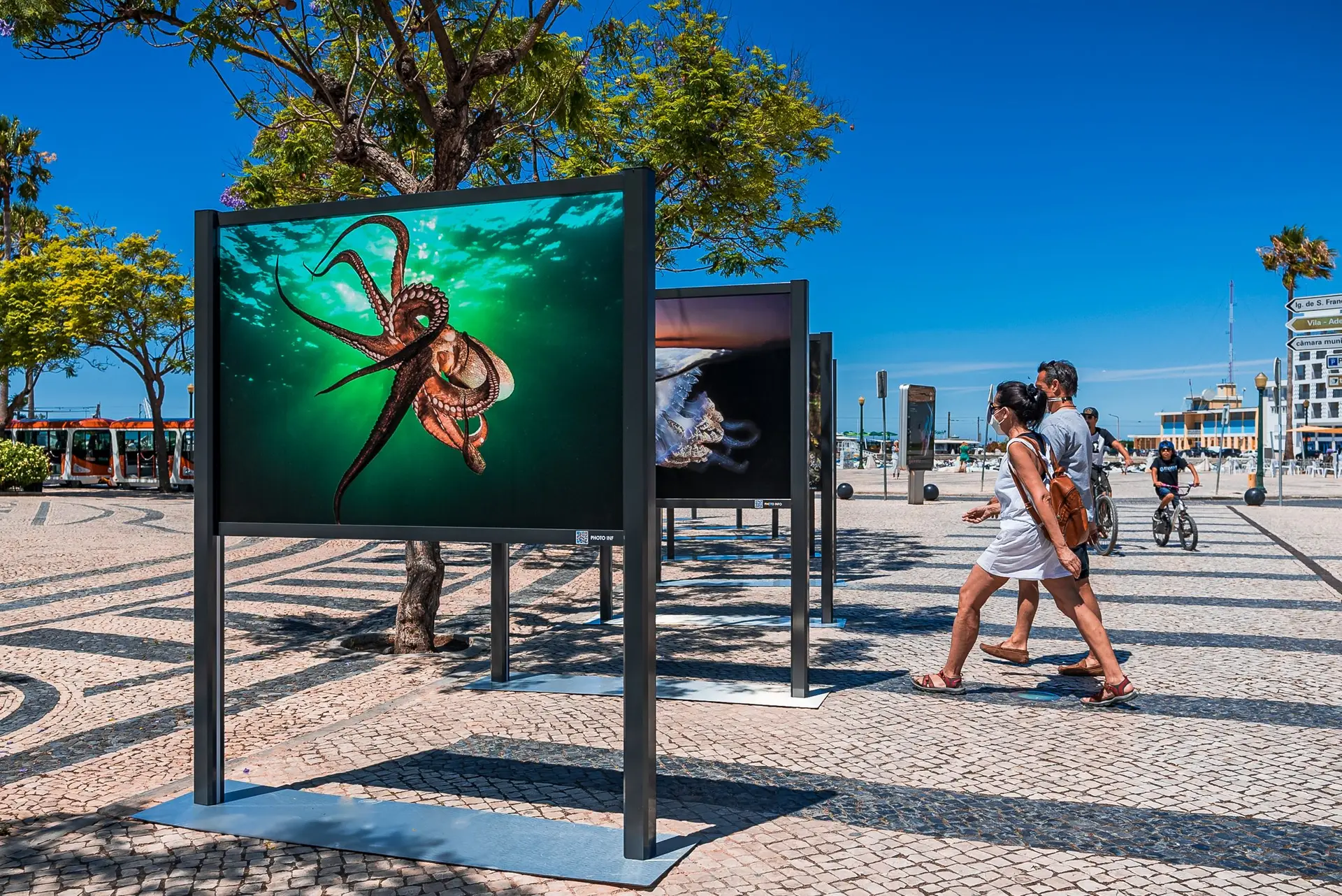 Todos estes seres subaquáticos da costa algarvia, estão expostos ao ar livre num conjunto de dez elegantes estruturas expositivas que albergam 18 fotografias, dispostas ao longo do jardim e acessíveis aos muitos populares que por lá passam e que agora têm um pretexto para parar e apreciar a fauna e flora que apesar de estar perto de nós, não conseguimos apreciar de forma tão próxima e intimista como agora.