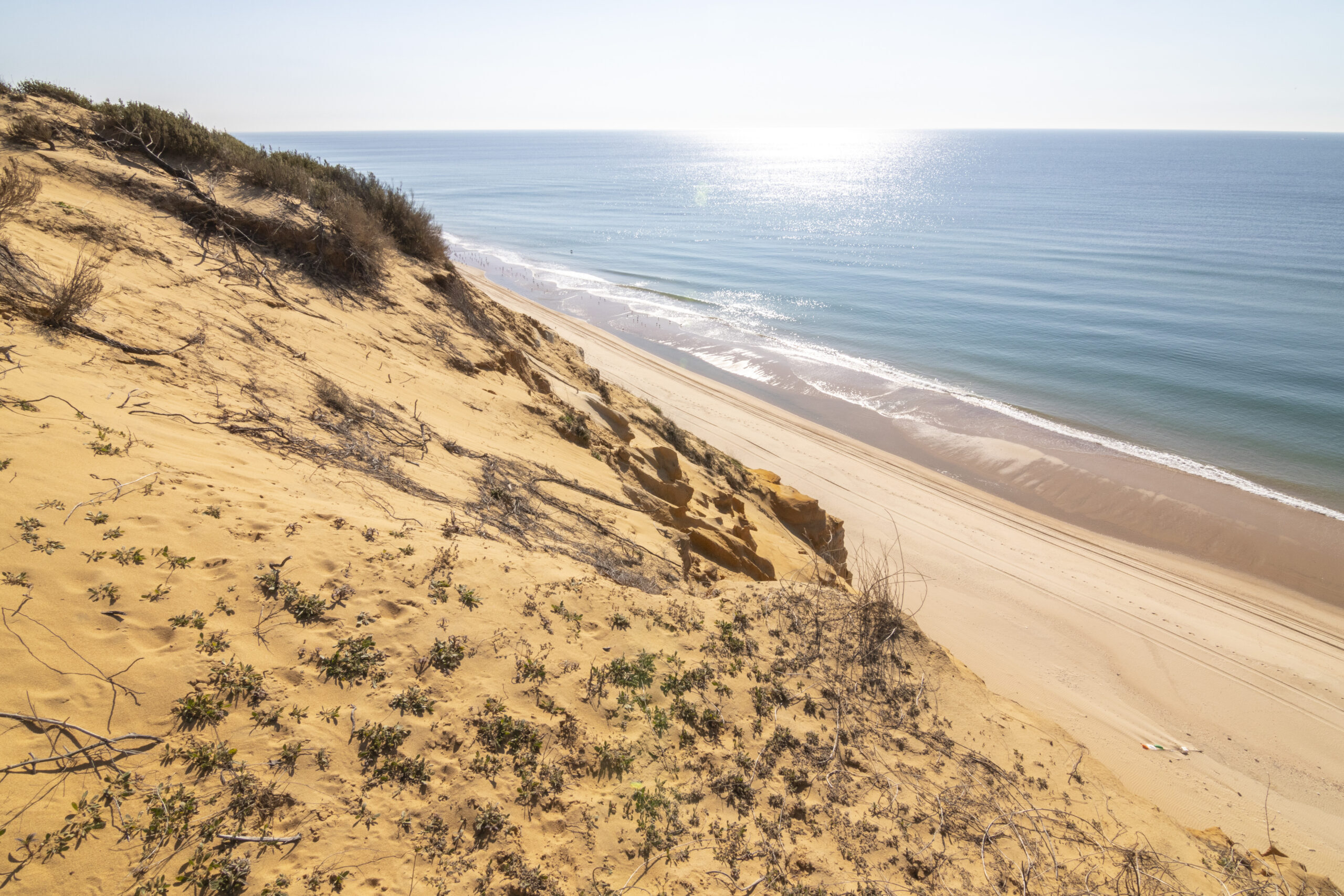 As praias do barlavento algarvio são conhecidas pelas falésias que as rodeiam e estas são protagonistas de uma grande parte dos postais que os turistas levam para casa depois de visitarem a região. No entanto, no país vizinho e bem perto do Algarve também poderá encontrar algumas falésias semelhantes às que se veem na região sul de Portugal. Ainda assim, é numa praia em Espanha que se encontra a falésia dunar mais alta da Europa.