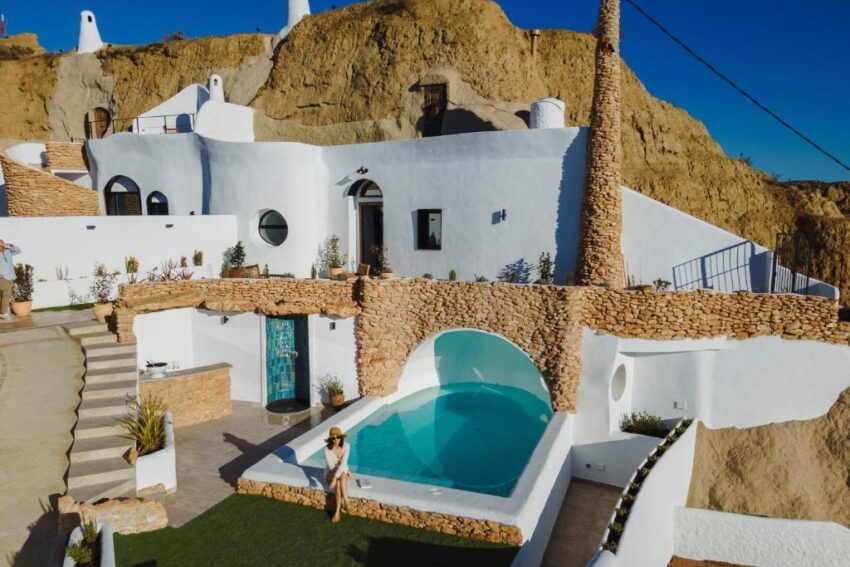 Cada caverna é equipada com cozinha, sala, quartos e casa de banho. No exterior, há ainda piscina privada e jardim com vista para o Geoparque de Granada, classificado pela UNESCO como Geoparque Global.