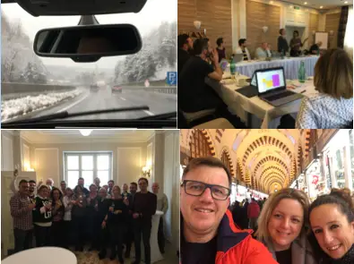 Relembro uma viagem de trabalho recente de 10 dias com 5 dias de trabalho em Bratislava e em que pisei literalmente 7 países. Saí de carro até Sevilha, fica aqui ao lado e foi num instante, apanhei um voo para Veneza, bela Itália. A Nina e o Matjas estavam à minha espera e em duas horas chegámos a Ljubljana, na Eslovénia onde passei o fim-de-semana com eles. Tínhamos uma reunião de trabalho em Bratislava, na Eslováquia, e na segunda-feira de manhã metemos-nos a caminho. Parámos na Áustria para almoçar e uma hora depois estávamos no hotel em Bratislava. Entretanto chegaram todos os nossos colegas, ao todo representamos 23 países. Jantámos juntos e a seguir ao jantar resolvemos ir beber um copo a Viena de Áustria, enganámos-nos no caminho e entrámos Hungria a dentro. Volta para trás, e 30 minutos depois estamos à procura do bar. Bebemos um copo, pusemos as conversas em dia, e regressámos pois no dia a seguir tínhamos uma agenda intensa de trabalho a começar logo às 09h00. Vinte e três países sentados à volta da mesma mesa com assuntos comuns. Até sexta-feira o tempo voou, entre o trabalho e os momentos sociais e de lazer conduzidos pelo nosso anfitrião, o Stefan. A sexta-feira chega num ápice, é tempo de regressar. Paramos novamente na Áustria para comer qualquer coisa e seguimos em direção a Ljubljana. No dia seguinte apanhamos o voo para Istambul, uma viagem de fim de semana imprevista organizada pela empresa da Nina e do Matjas. Somos oito e o tempo está ótimo para o mês de Novembro. Aproveitámos todos os minutos em Istambul, e regressamos na segunda-feira de madrugada a Ljubljana, onde pegámos no carro e seguimos diretos para Veneza, para apanhar o voo para Sevilha e o carro até Faro.