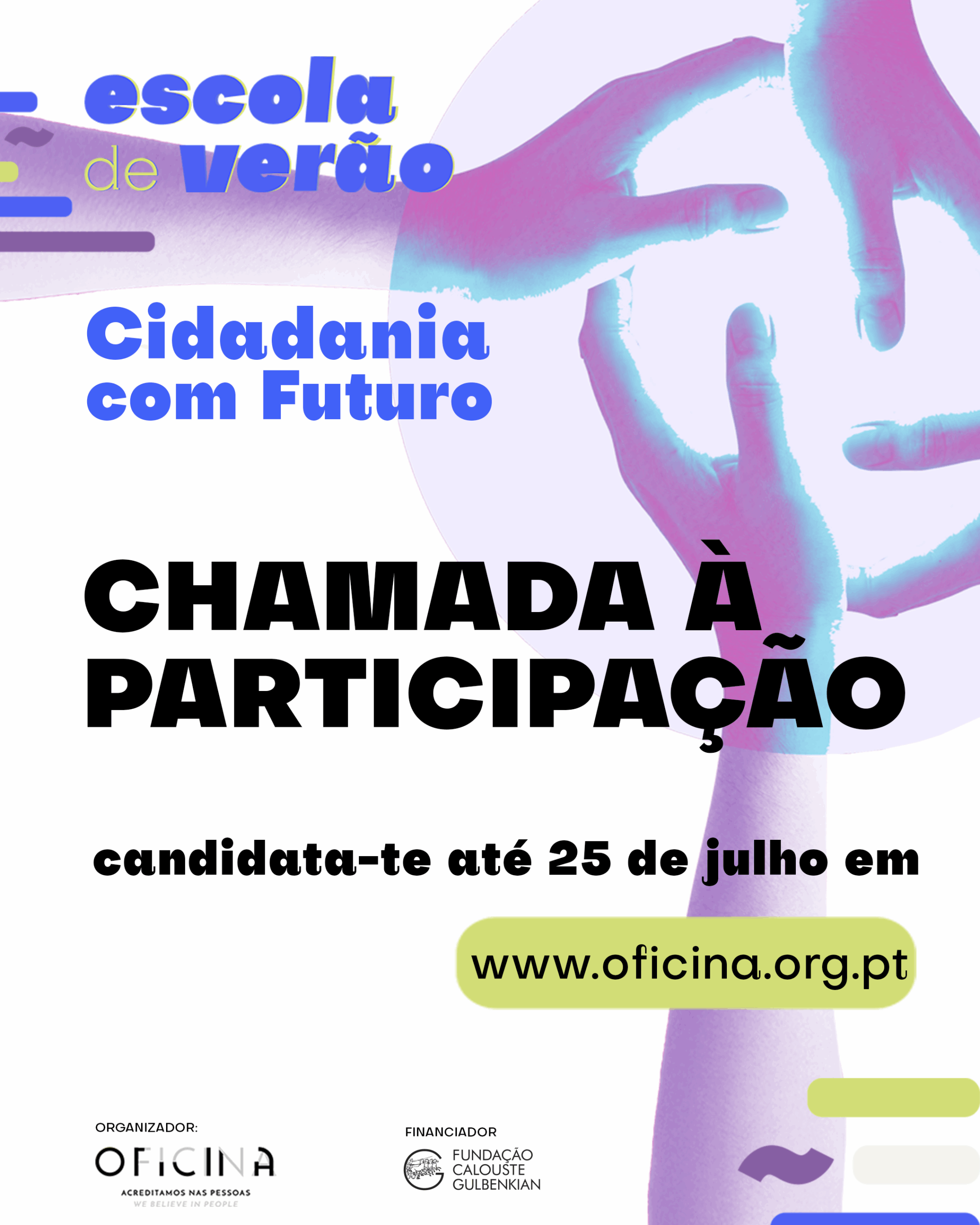 Mais informações estão disponíveis através do contacto [email protected] ou do telefone 967 565 219, bem como nas redes sociais @oficinadeparticipacao e @oficina.org.pt.