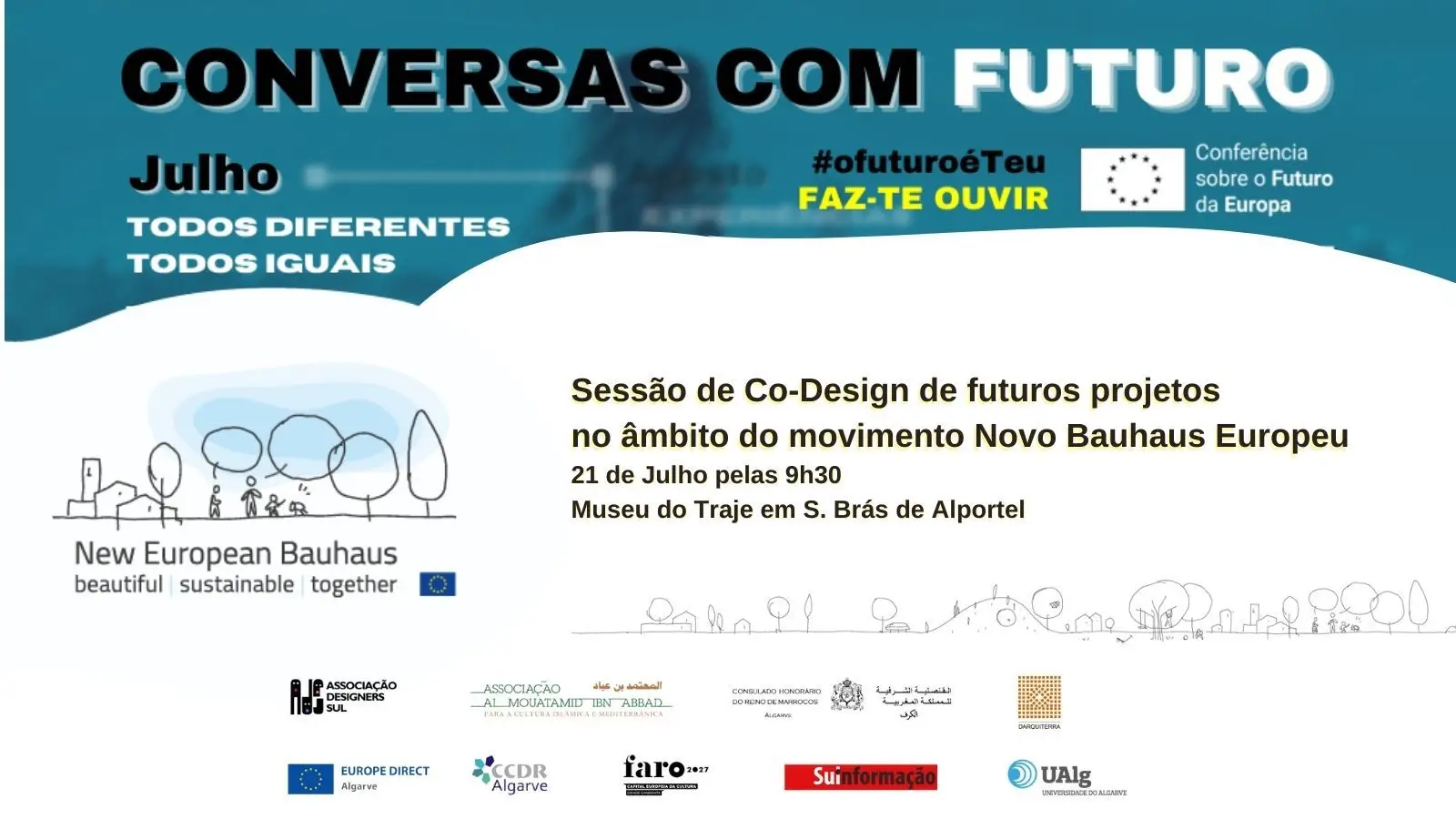 A Associação Designers do Sul, a Associação Al Mouatamid Ibn Abbad, o Europe Direct Algarve, a CCDR Algarve, o Sul Informação e Faro2027 Candidatura de Faro a Capital Europeia da Cultura, juntaram-se assim, em parceria, com o objetivo de informar, inspirar e esclarecer sobre este grande movimento europeu, e também de facilitar a participação dos agentes da região na construção deste Novo Bauhaus Europeu.