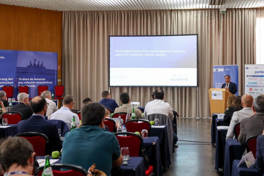 Foi neste contexto que o Programa Regional ALGARVE 2030 participou, no passado dia 20 de maio, no simpósio luso-alemão “Gestão de Águas e Greentech com foco na Escassez de Água”, que decorreu no Centro de Congressos Forum Dom Pedro, em Vilamoura. A iniciativa foi organizada pela Câmara de Comércio e Indústria Luso-Alemã e contou com a presença de cerca de 80 participantes, entre empresas tecnológicas, utilizadores finais, associações setoriais e especialistas do setor.