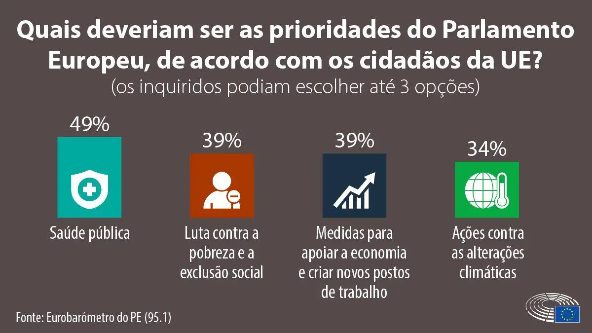► 96% dos portugueses consideram que a UE deve ter mais competências para lidar com crises como a pandemia da COVID-19.