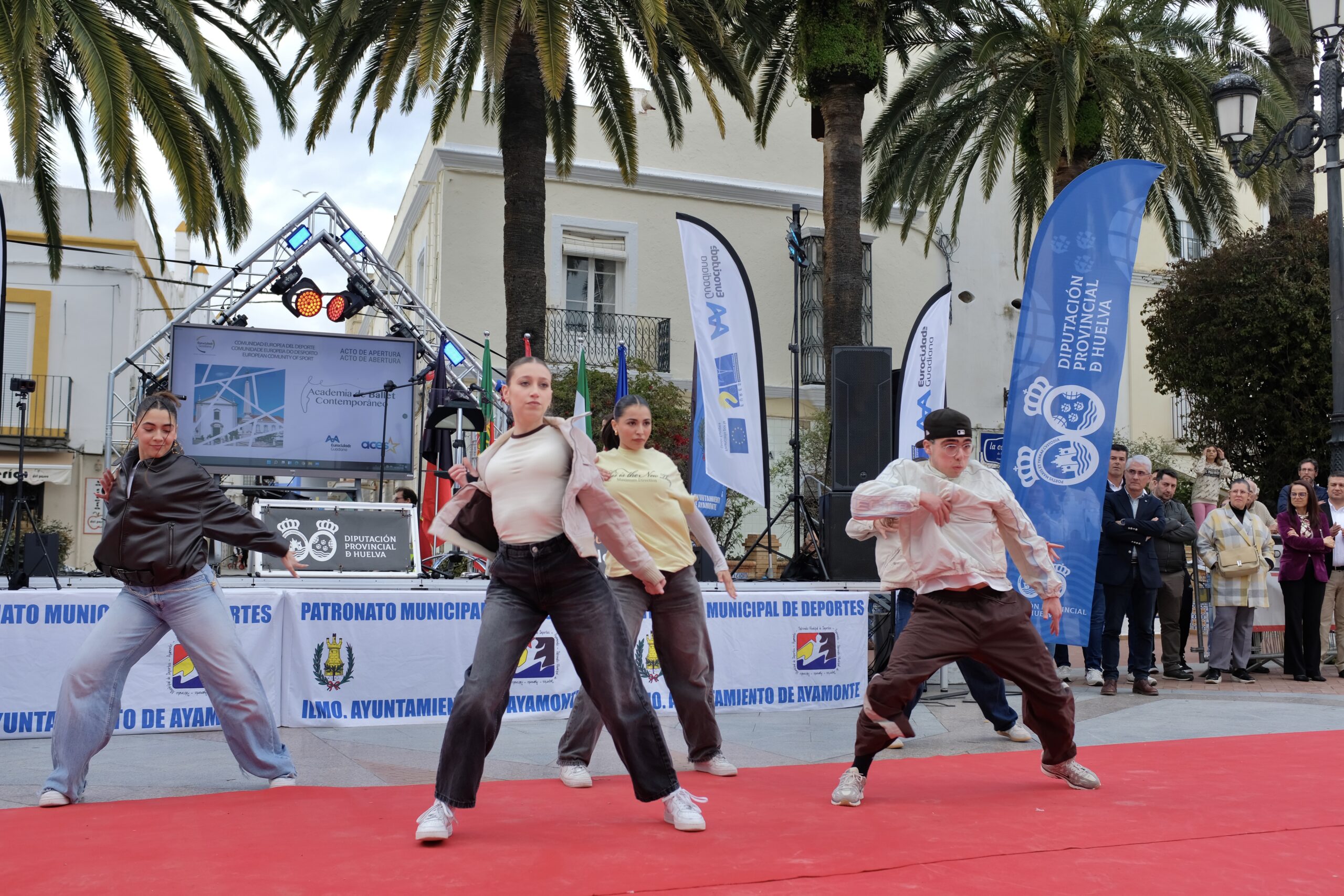 O programa artístico teve início com a atuação do grupo Danzarte Ayamonte, que abriu o espetáculo com uma coreografia marcada pela cor e pela energia.