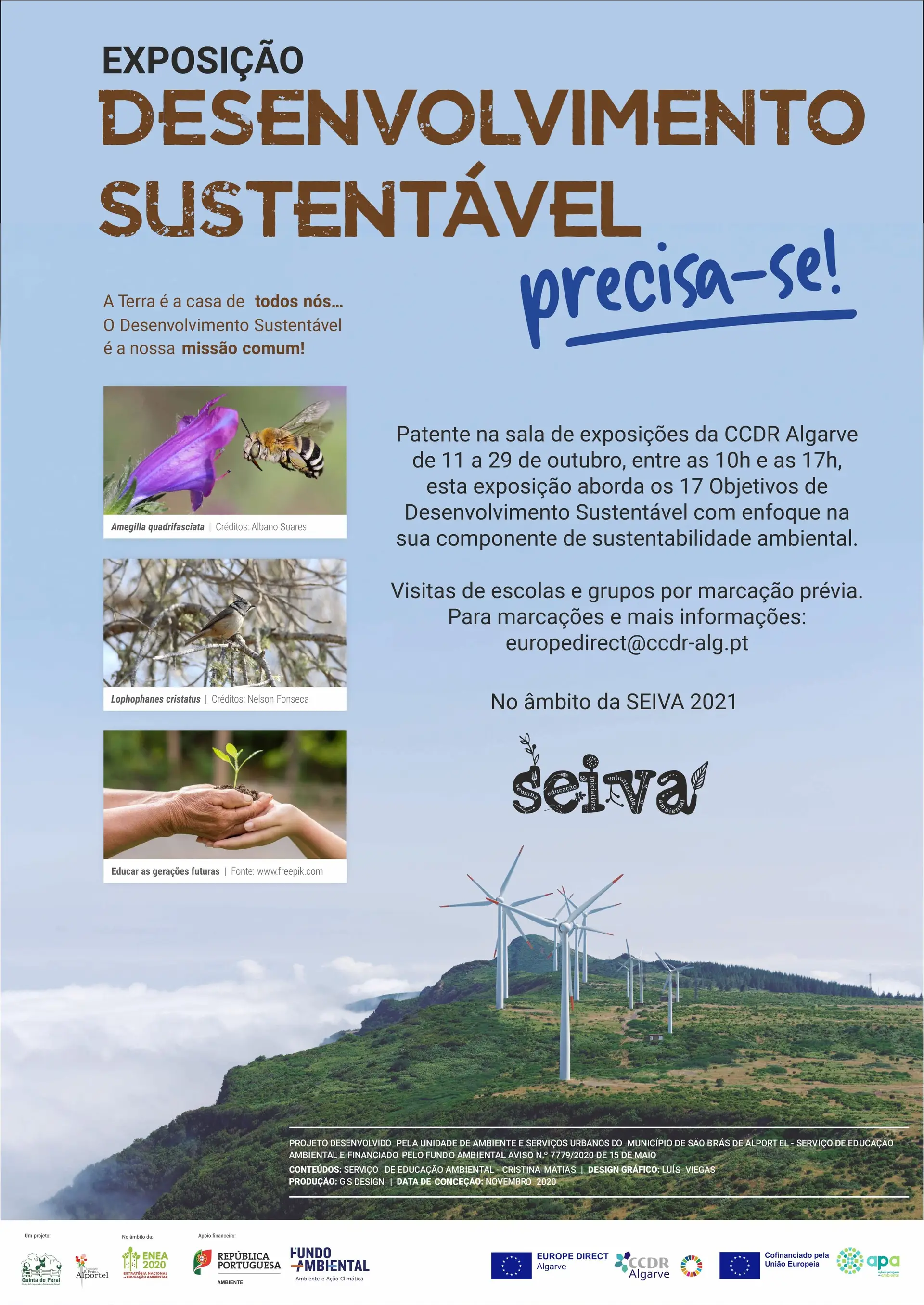 A exposição de sensibilização ambiental “Desenvolvimento Sustentável Precisa-se!”, concebida pelo Município de São Brás de Alportel e cofinanciada pelo Fundo Ambiental, será inaugurada na próxima segunda-feira, pelas 10 horas, na sala de exposições da Comissão de Coordenação e Desenvolvimento Regional (CCDR) da Região do Algarve.