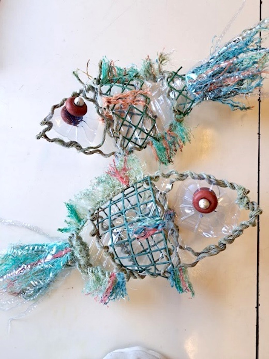 - Construção de 15 peças representativas de peixes Choupa e algas marinhas reutilizando os resíduos recolhidos (Figura 2).