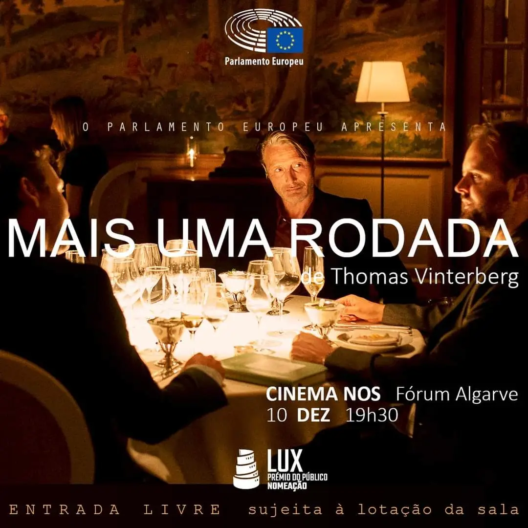 HOJE, nos cinemas NOS em Faro, o Gabinete do Parlamento Europeu em Portugal convida à sessão de cinema “Mais uma rodada” de Thomas Vinterberg, Lux Audience Award e Óscar para melhor filme estrangeiro.