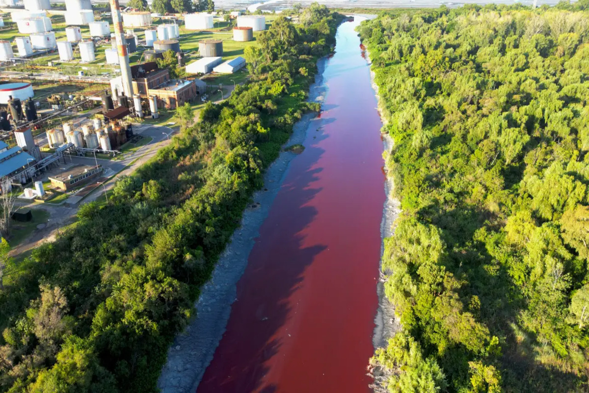Os moradores de uma área próxima de Buenos Aires, na Argentina, foram surpreendidos ao ver o rio Sarandí tingido de um vermelho intenso e invulgar. Além da cor alarmante, um cheiro forte e desagradável tomou conta da região, deixando os habitantes preocupados com o impacto ambiental da situação.