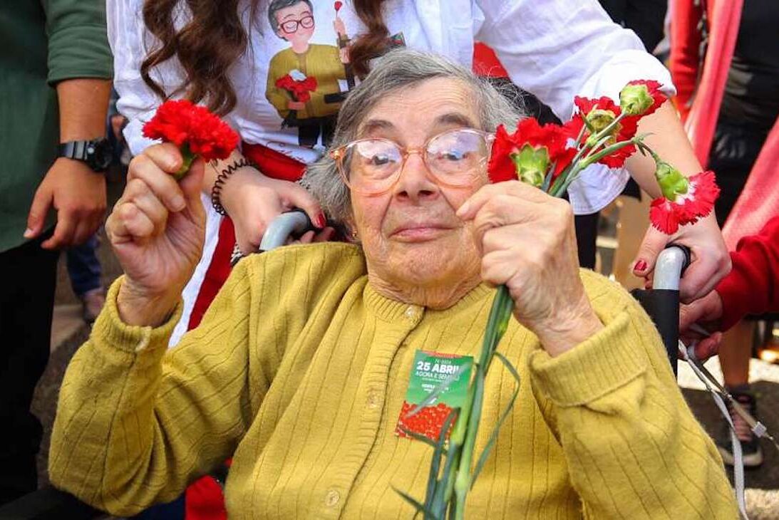 Em 25 de abril de 1974, Celeste Caeiro (1933-2024) ofereceu a um militar um cravo, que este colocou no cano da espingarda, gesto que a mulher repetiu com outros soldados, em Lisboa, e que se tornaria no símbolo da revolução.