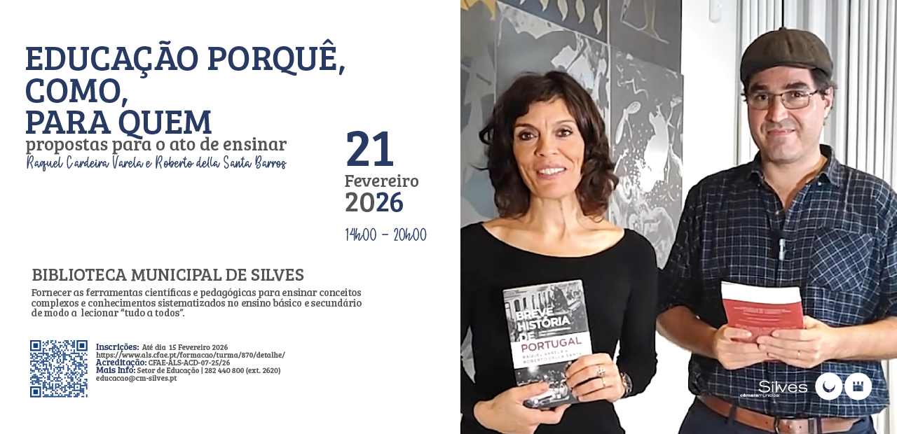 O Município de Silves promove, no próximo dia 21 de fevereiro, entre as 14:00 e as 20:00, a ação de formação “Educação, Porquê, Para Quem: Propostas para o Ato de Ensinar”, que terá lugar no auditório da Biblioteca Municipal de Silves.