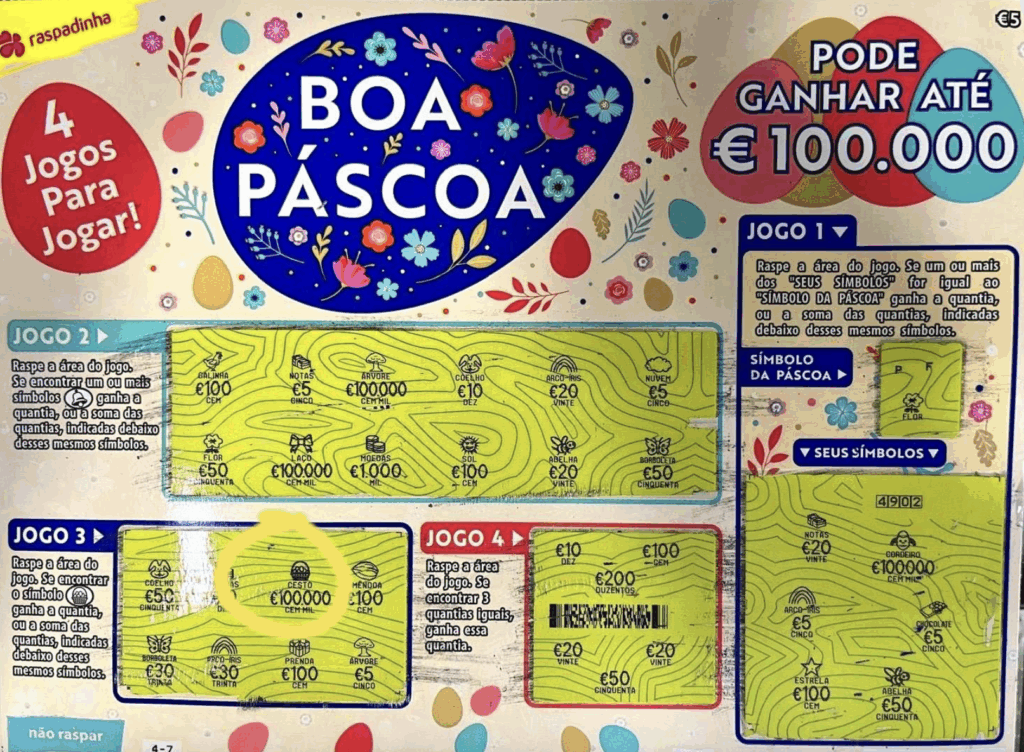 A raspadinha em questão é considerada “única em todo o país”, tendo sido lançada exclusivamente para assinalar a quadra pascal, segundo o Notícias ao Minuto. Por isso, o bilhete premiado representava a única oportunidade de conquistar aquele montante em particular.