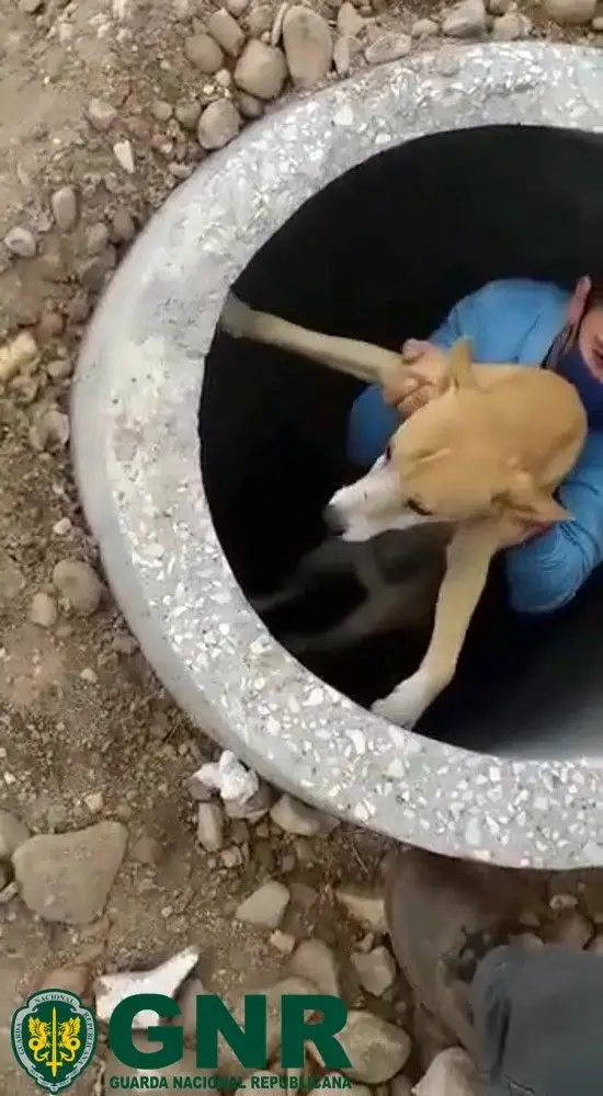 Após terem recebido um alerta de que “um cão se encontrava em perigo num ramal de esgoto com cerca de dois metros de altura, os elementos do NPA deslocaram-se ao local, tendo sido possível resgatar o animal”, explica a GNR, acrescentando que “após o resgate, o cão foi entregue ao seu proprietário”.
