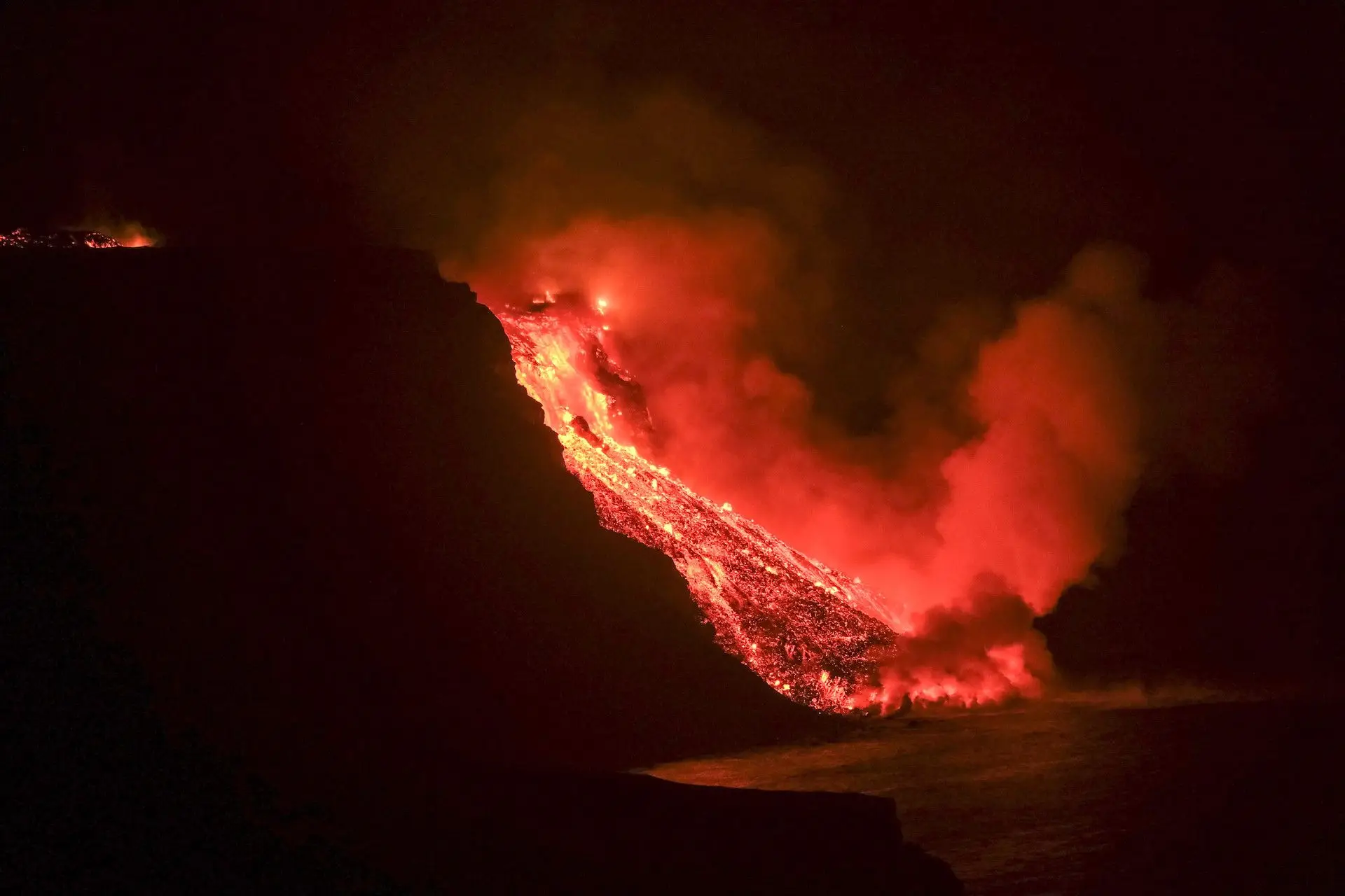 Quase uma semana e meia depois de o vulcão ter entrado em erupção na ilha de La Palma, a lava chegou na terça-feira à noite ao oceano.