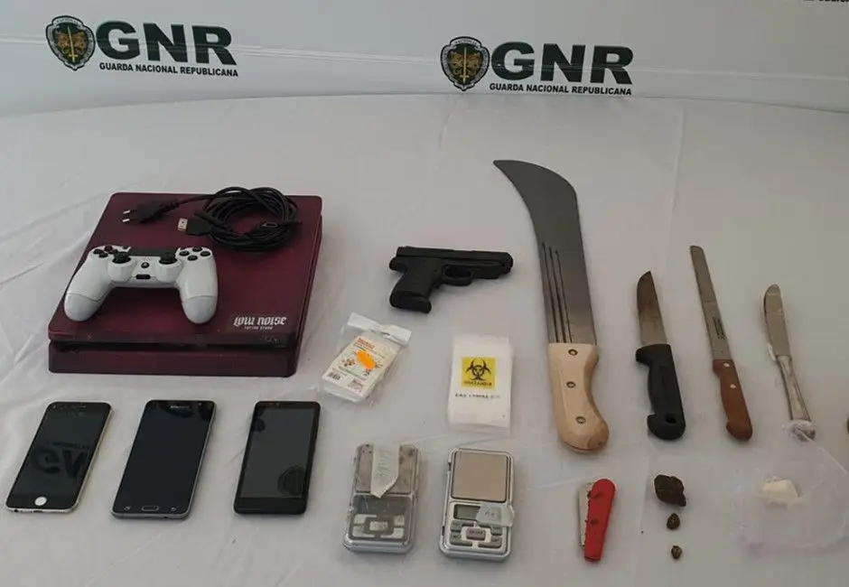 Durante uma investigação de furto, que decorria há cerca de quatro meses, foi dado cumprimento a um mandado de busca domiciliária, que culminou na apreensão de 34 doses de cocaína, 22 doses de haxixe, 3 telemóveis, 1 réplica de pistola, 1 catana e diverso material para pesagem, corte, embalamento e acondicionamento de estupefacientes.