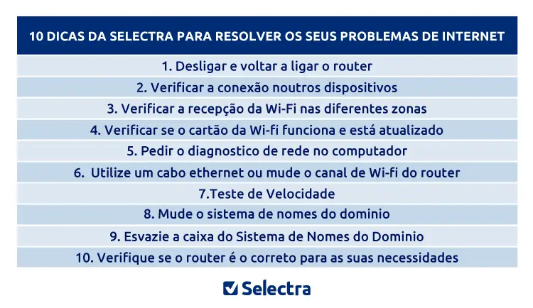 A Selectra, especializada na comparação e ativação de planos de internet, energia e gás, elaborou esta shortlist com 10 dicas que o vão ajudar a resolver os problemas de conexão.