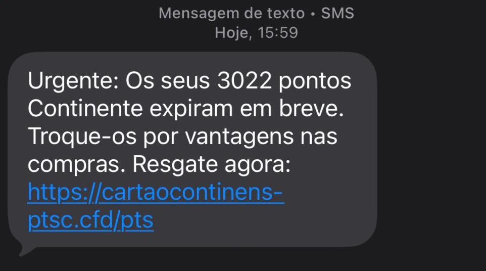 No caso deste SMS, a referência ao Continente e aos pontos acumulados procura precisamente criar essa sensação de normalidade. Muitas pessoas usam cartões de fidelização no dia a dia, o que torna a mensagem mais plausível e aumenta o risco de clique por impulso.