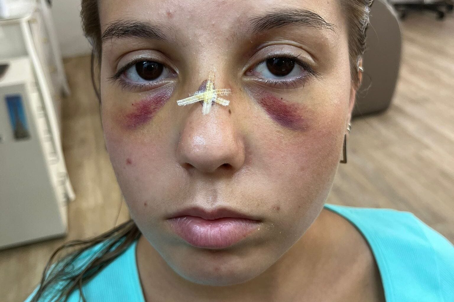 Luana encontra-se a fazer pensos porque ficou com o nariz partido.